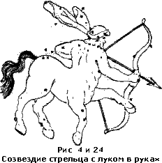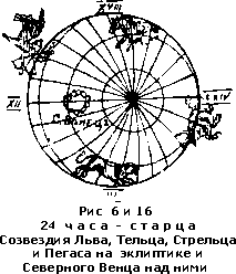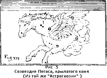 А между тем, если бы комментаторы знали, что эти четверо животных находятся и до сих пор на том «стеклянном море», каким для древних представлялся небесный свод; что в любую ясную звездную ночь каждый может их наблюдать в виде соответствующих созвездий Льва, Тельца, Стрельца и Пегаса; если бы они знали, что на всех древних картах первых веков христианства и даже вплоть до XIX столетия около упомянутых созвездий очерчивались контуры этих самых животных, при чем Стрелец рисовался именно в виде центавра с туловищем, как у коня, с головой, как у человека; если б они знали, наконец, что все эти контуры древние астрологи предполагали действительно черченными на «кристаллическом небесном своде» или даже живущими на нем в виде реальных зверей, и что все они «полны очей», т.е. вечно мерцающих звезд, спереди и сзади, внутри и около (рис. 2, 3, 4 и 5), — то они поняли бы, что здесь только описывается одна из самых чудных картин звездного неба, а не те многоглазые чудовища, которые создала их дикая, научно не подготовленная фантазия!