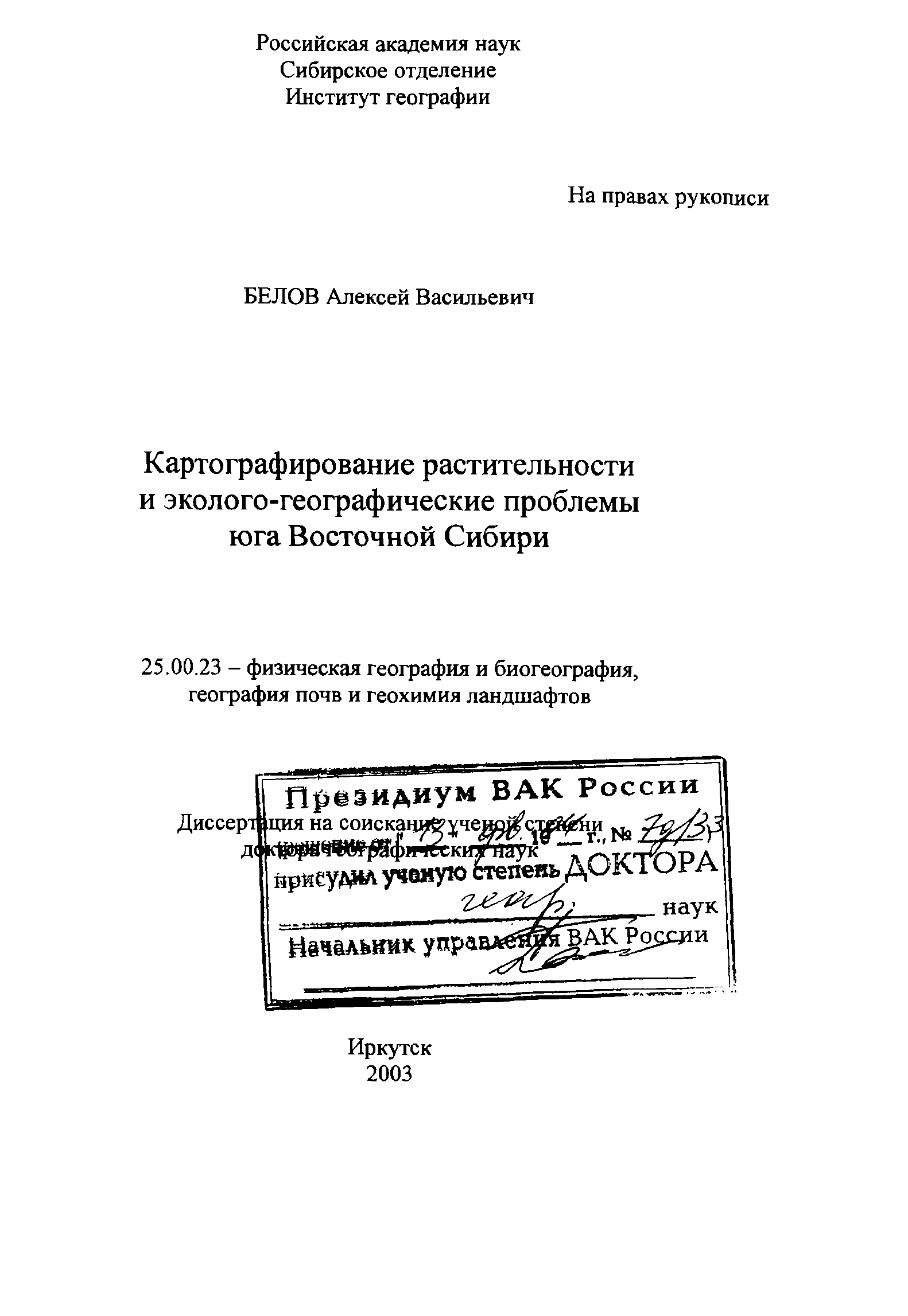 "Картографирование растительности и эколого-географические проблемы юга Восточной Сибири : диссертация ... доктора географических наук : специальность 25.00.23" - читать интересную книгу автора (Белов Алексей Васильевич)