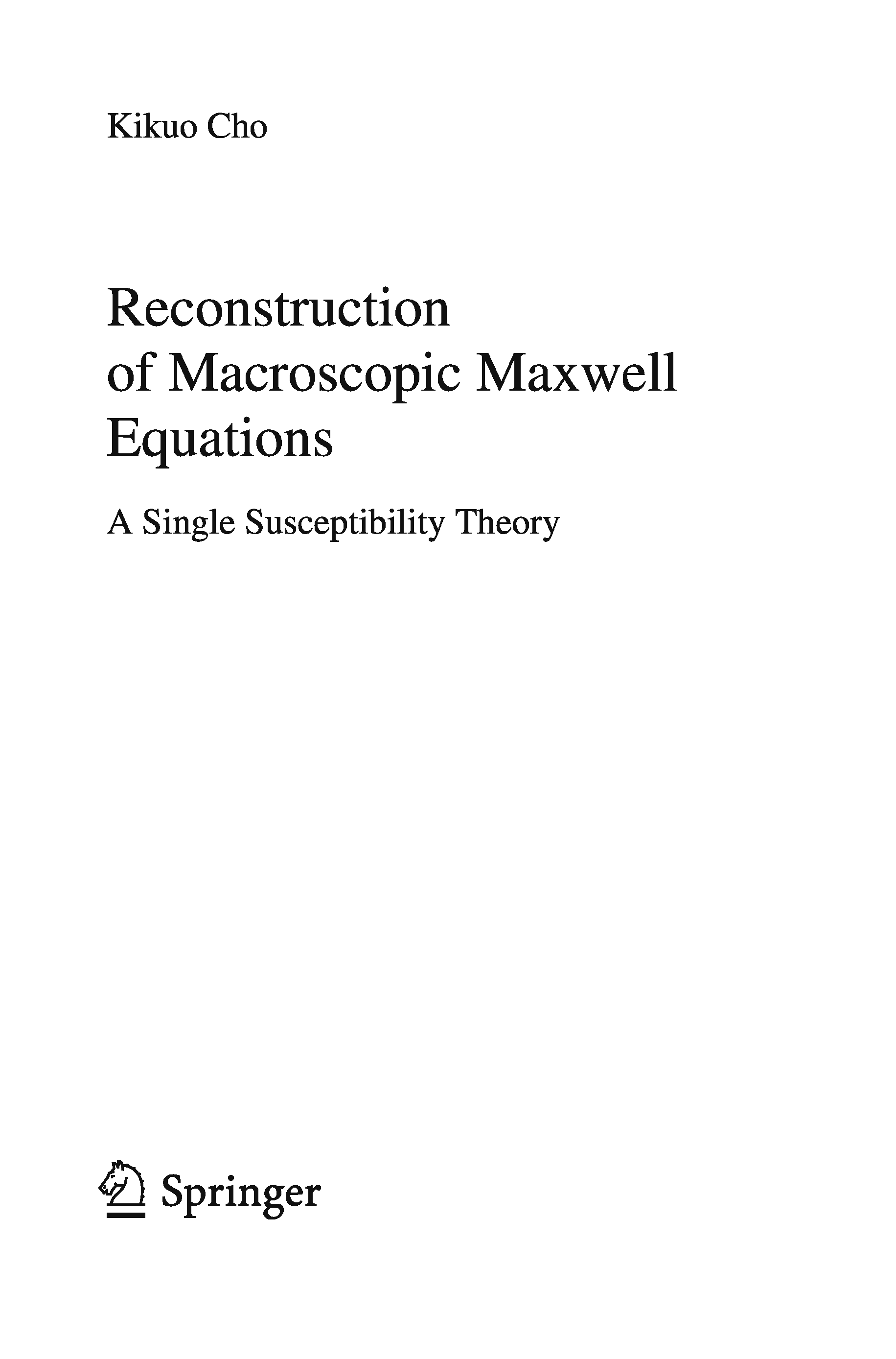"Reconstruction of Macroscopic Maxwell Equations: A Single Susceptibility Theory (Springer Tracts in Modern Physics, 237)" - читать интересную книгу автора (Kikuo Cho)