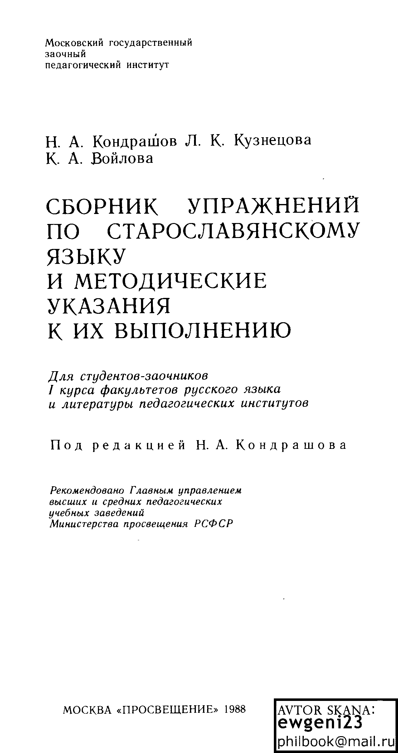 "Сборник упражнений по старославянскому языку и методические указания к их выполнению " - читать интересную книгу автора