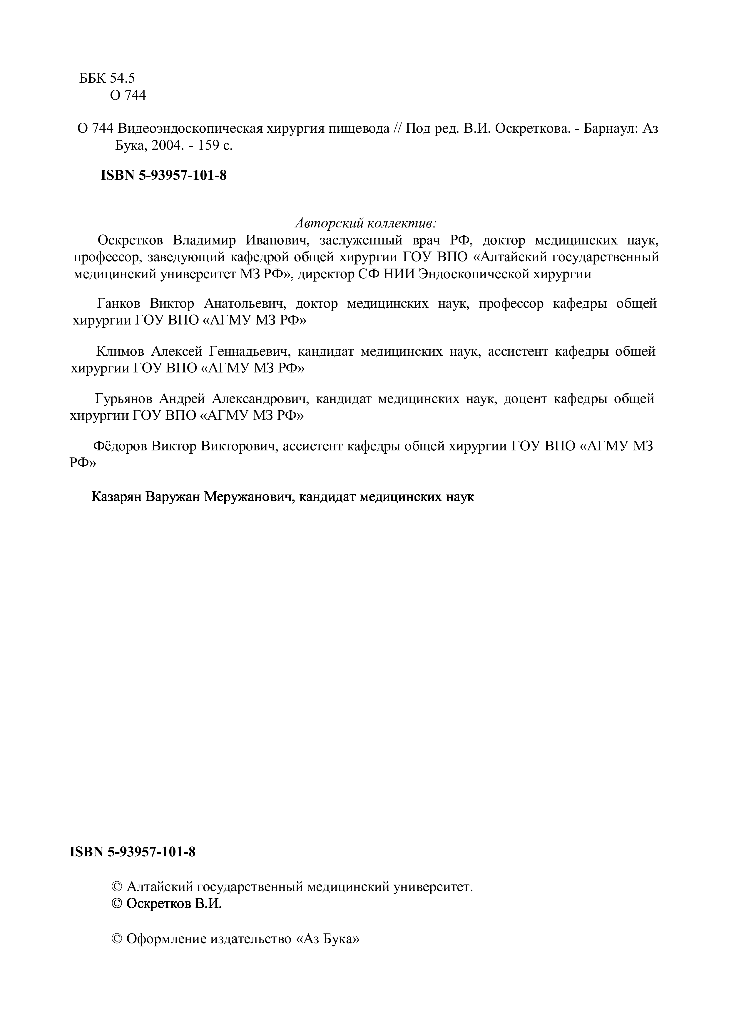 "Видеоэндоскопическая хирургия пищевода. " - читать интересную книгу автора (под ред.В.И.Оскреткова )