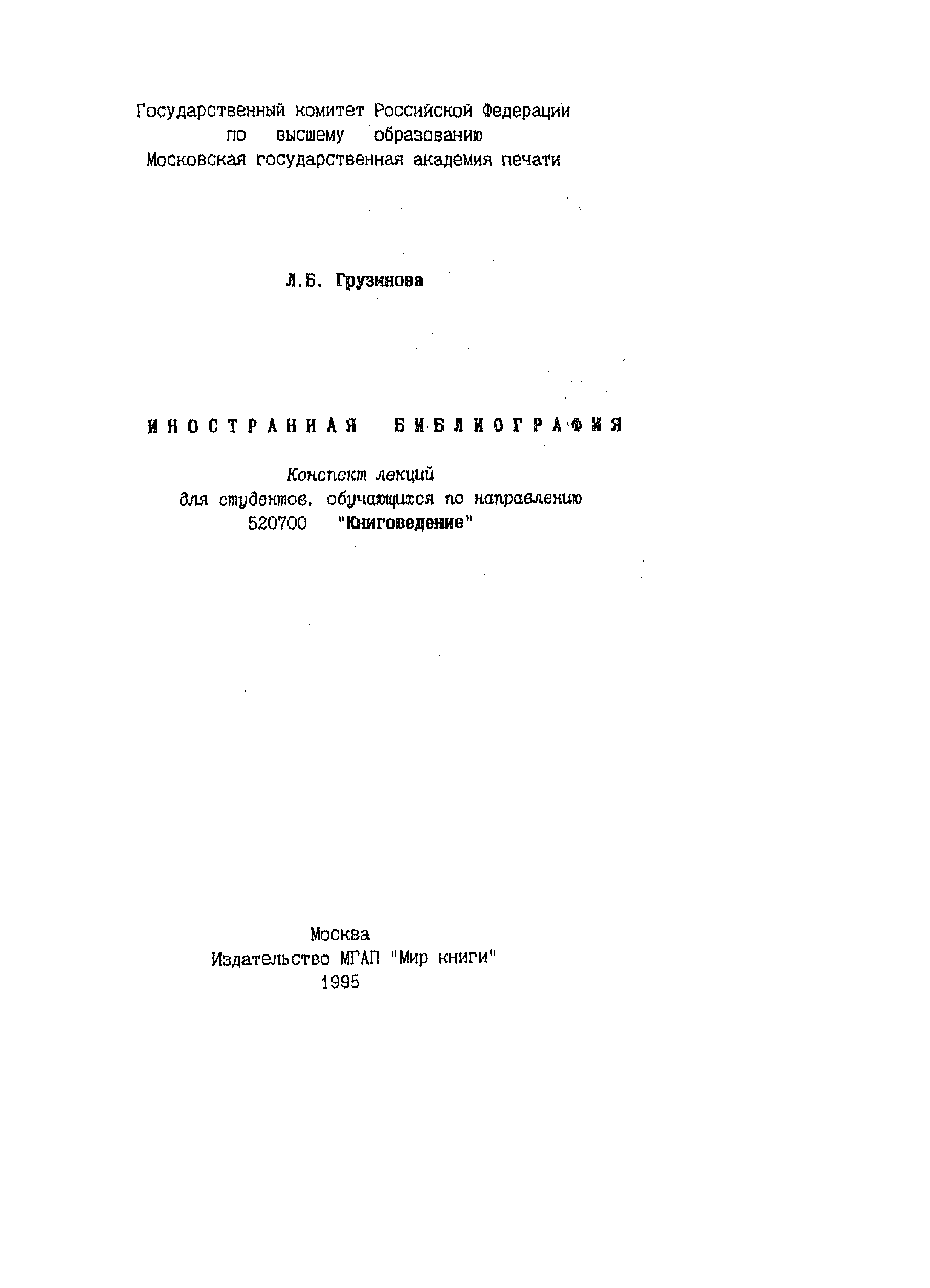 "Иностранная библиография Конспект лекций для студентов, обучающихся по направлению 520700 "Книговедение"" - читать интересную книгу автора