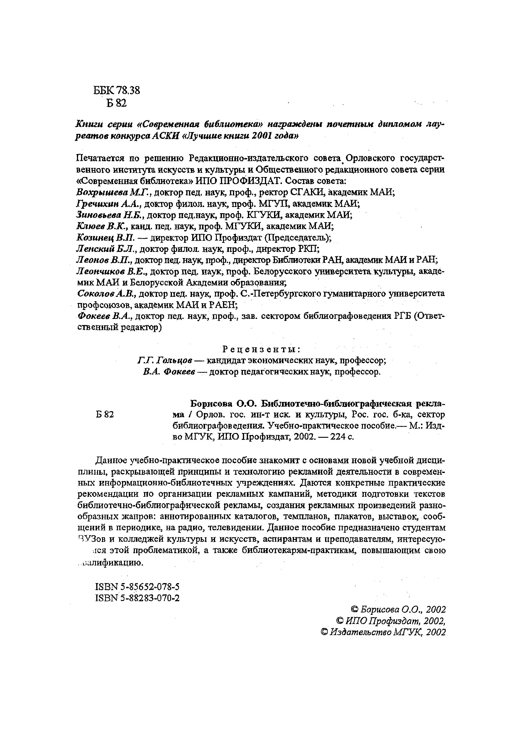 "Библиотечно-библиографическая реклама : Учеб.-практ. пособие : Учеб. пособие для студентов вузов, обучающихся по специ альности 052700 "Библиотековедение и библиогр."" - читать интересную книгу автора