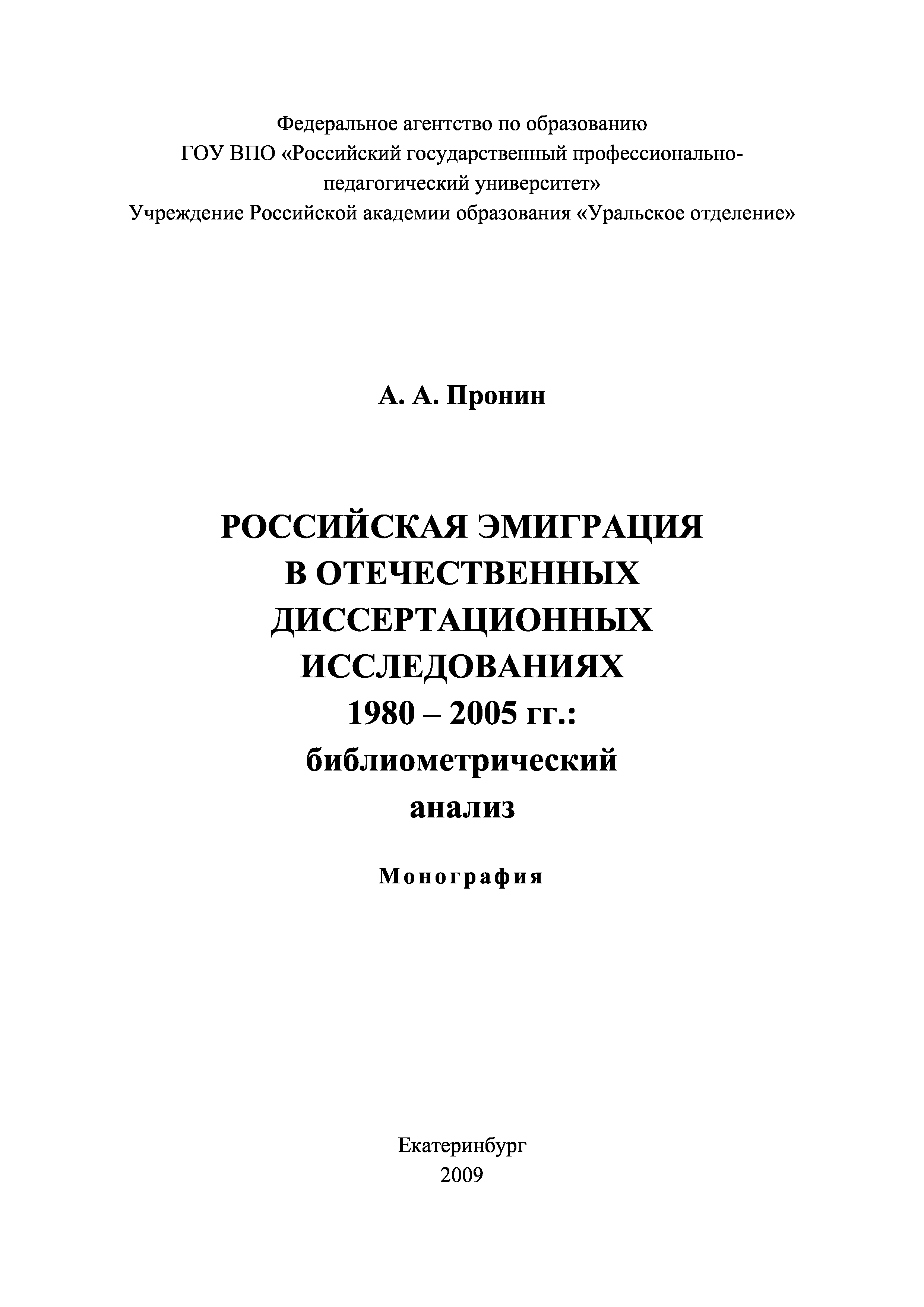 "Российская эмиграция в отечественных диссертационных исследованиях 1980-2005 гг.: библиометрический анализ : монография" - читать интересную книгу автора