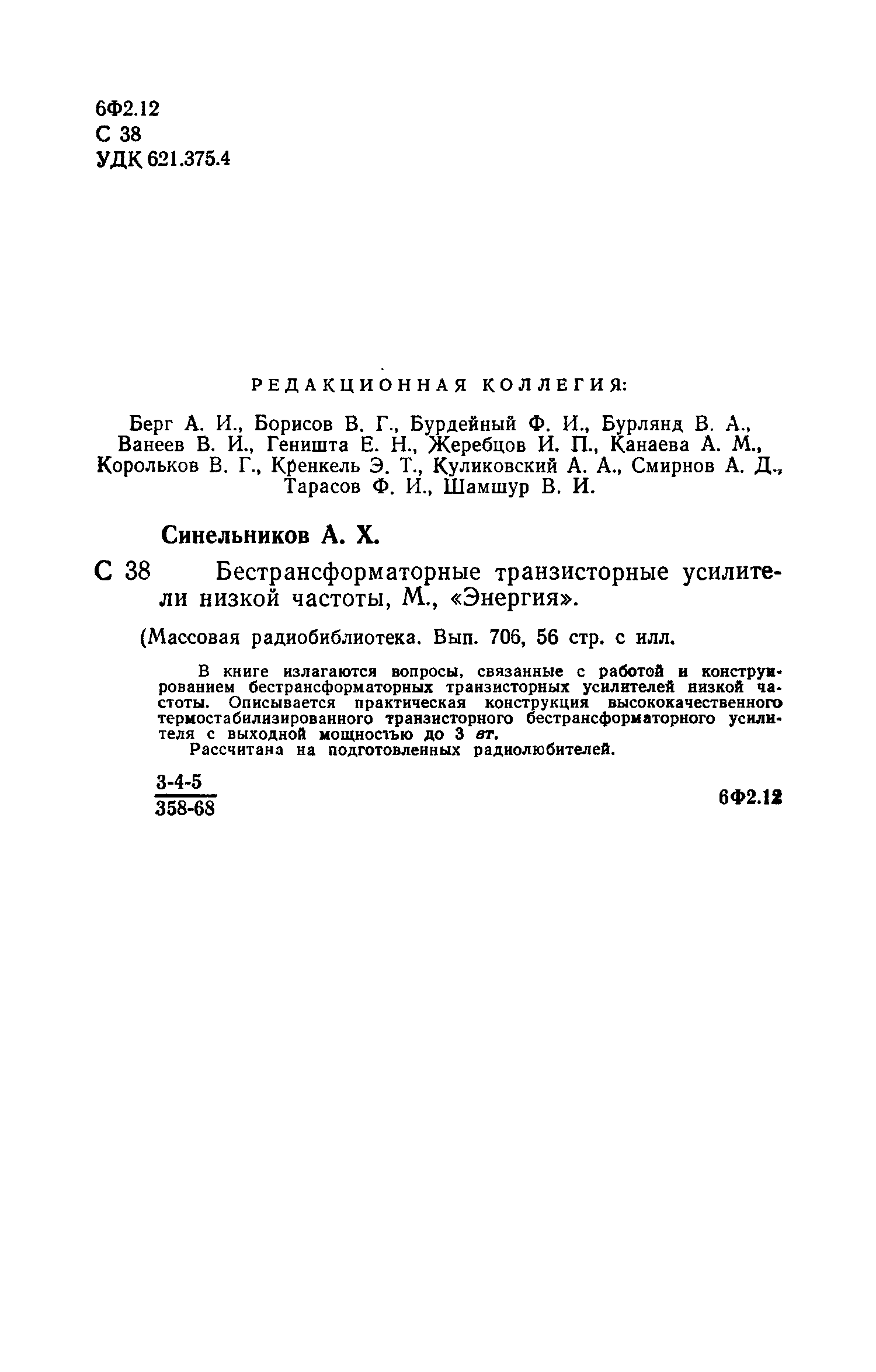 "Бестрансформаторные транзисторные усилители низкой частоты" - читать интересную книгу автора