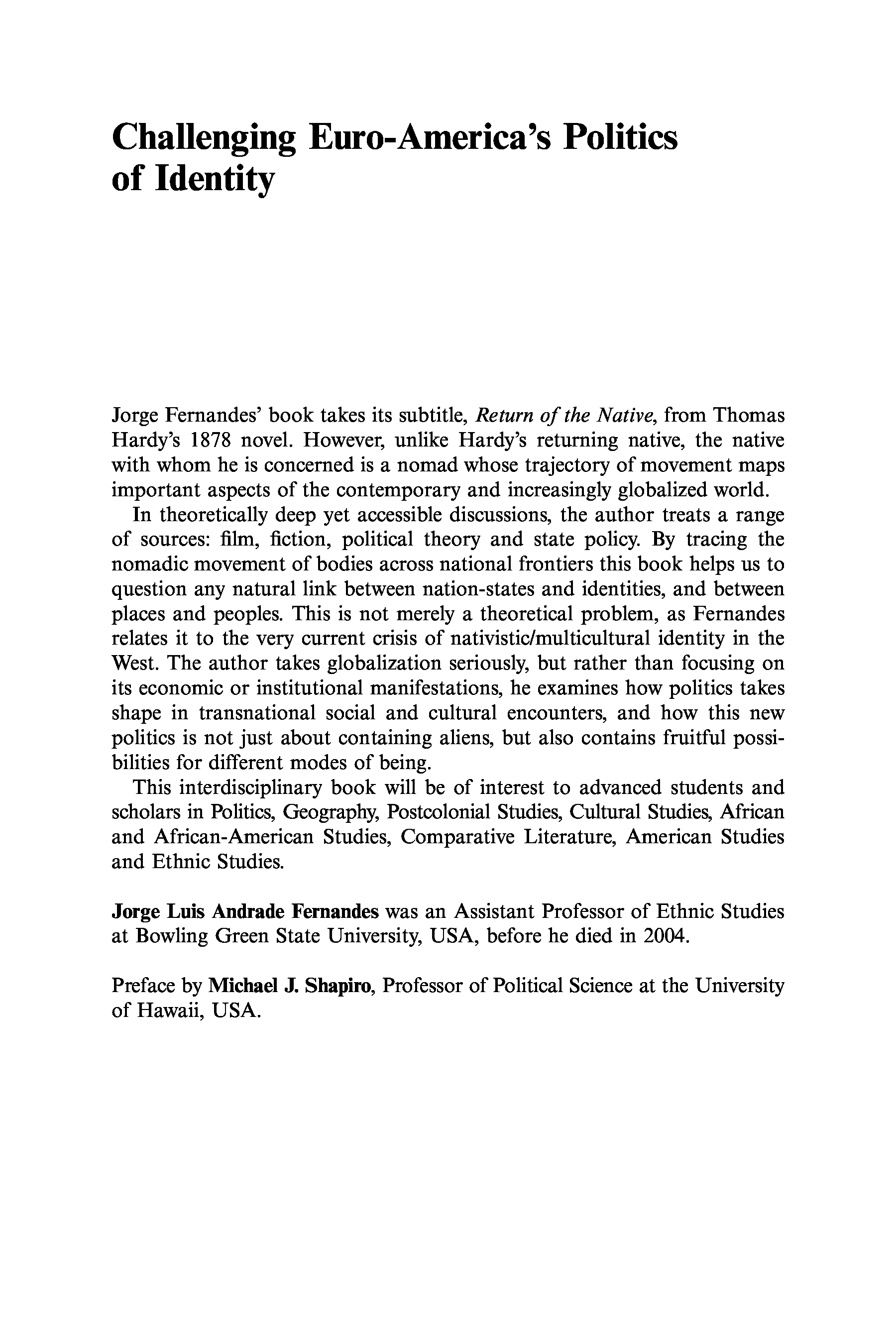 "Challenging Euro-America's Politics of Identity: The Return of the Native" - читать интересную книгу автора