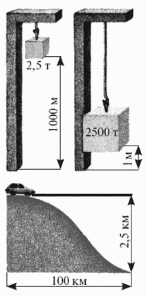 "Удивительная механика" - читать интересную книгу автора (Гулиа Нурбей Владимирович)Груз и струнаДля того чтобы сравнивать между собой аккумуляторы различных типов, я должен был выбрать какую-нибудь меру, или, как говорят ученые, критерий для их оценки. Можно сравнивать накопители по цене, экономичности, сложности, удобству и многим другим качествам. Но я хотел, чтобы моя «энергетическая капсула» была установлена прежде всего на автомобиле, а поэтому и сравнивать накопители решил применительно к автомобилю. На автомобилях же источником энергии для движения служит топливо, сгорающее в двигателе. И обычно говорят: «Расход топлива в таком-то автомобиле столько-то литров на 100 км пробега». Этот способ оценки автомобилей по расходу топлива на 100 км пути стал общепризнанным. Что ж, зачем искать новую меру для сравнения накопителей, когда достаточно хороша и старая. От добра, как говорится, добра не ищут. Только уж очень неудобно оценивать накопители энергии в литрах, лучше в килограммах. В общем мерой для сравнения я принял массу в килограммах такой «энергетической капсулы», которая позволит автомобилю средней величины, например массой в 1 т, проехать путь в 100 км. Дорога при этом должна быть ровной, хорошей, без подъемов и спусков, а автомобиль должен ехать равномерно, с обычной скоростью 60–80 км/ч, без остановок, обгонов, дорожно-транспортных происшествий и прочих приключений. Иначе сравнение будет очень затруднено. Если подсчитать силу, с которой нужно толкать или тянуть такой автомобиль, то получится около 250 Н. Эта сила была определена так. Автомобиль массой в 1 т привязали буксиром к другому автомобилю, а в буксирное устройство вставили динамометр — измеритель силы, или попросту пружинные весы. При равномерном буксировании со скоростью 60–80 км/ч динамометр показывал 250 Н.