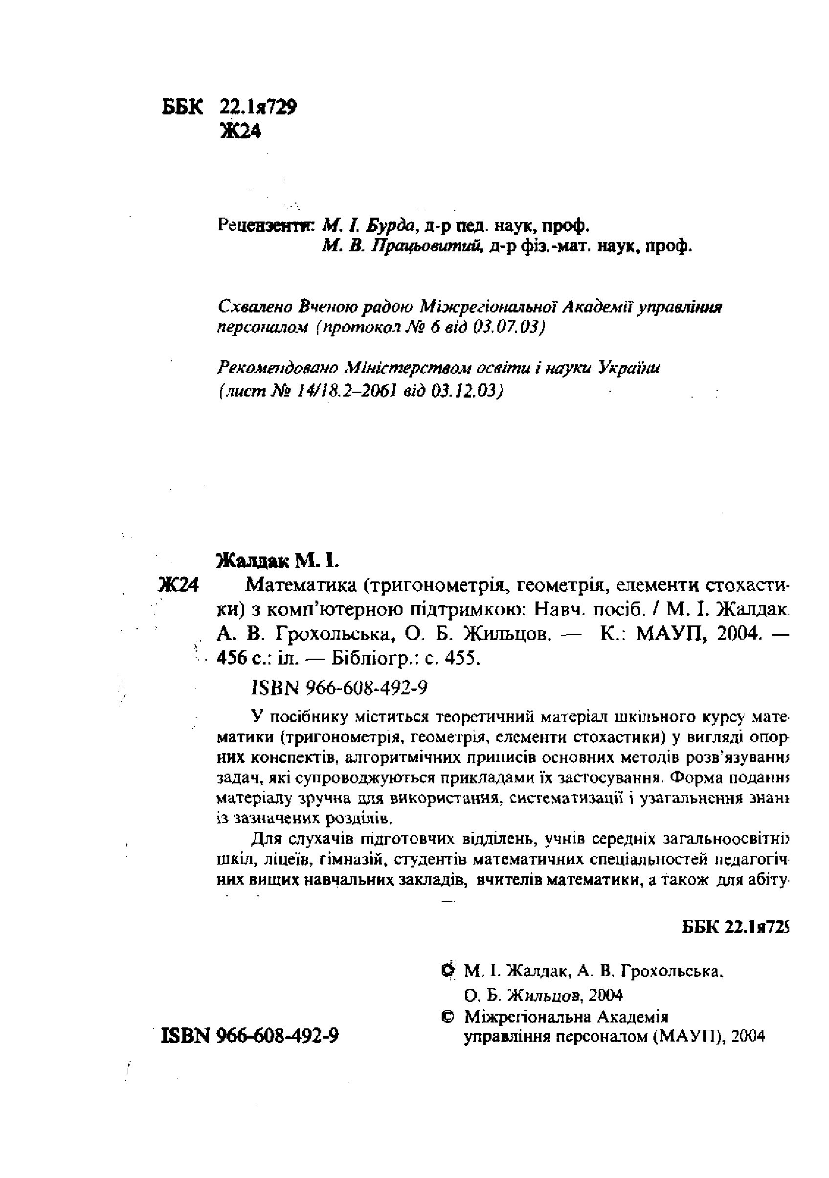 (Жалдак М.І., Грохольська А.В., Жильцов О.Б.)