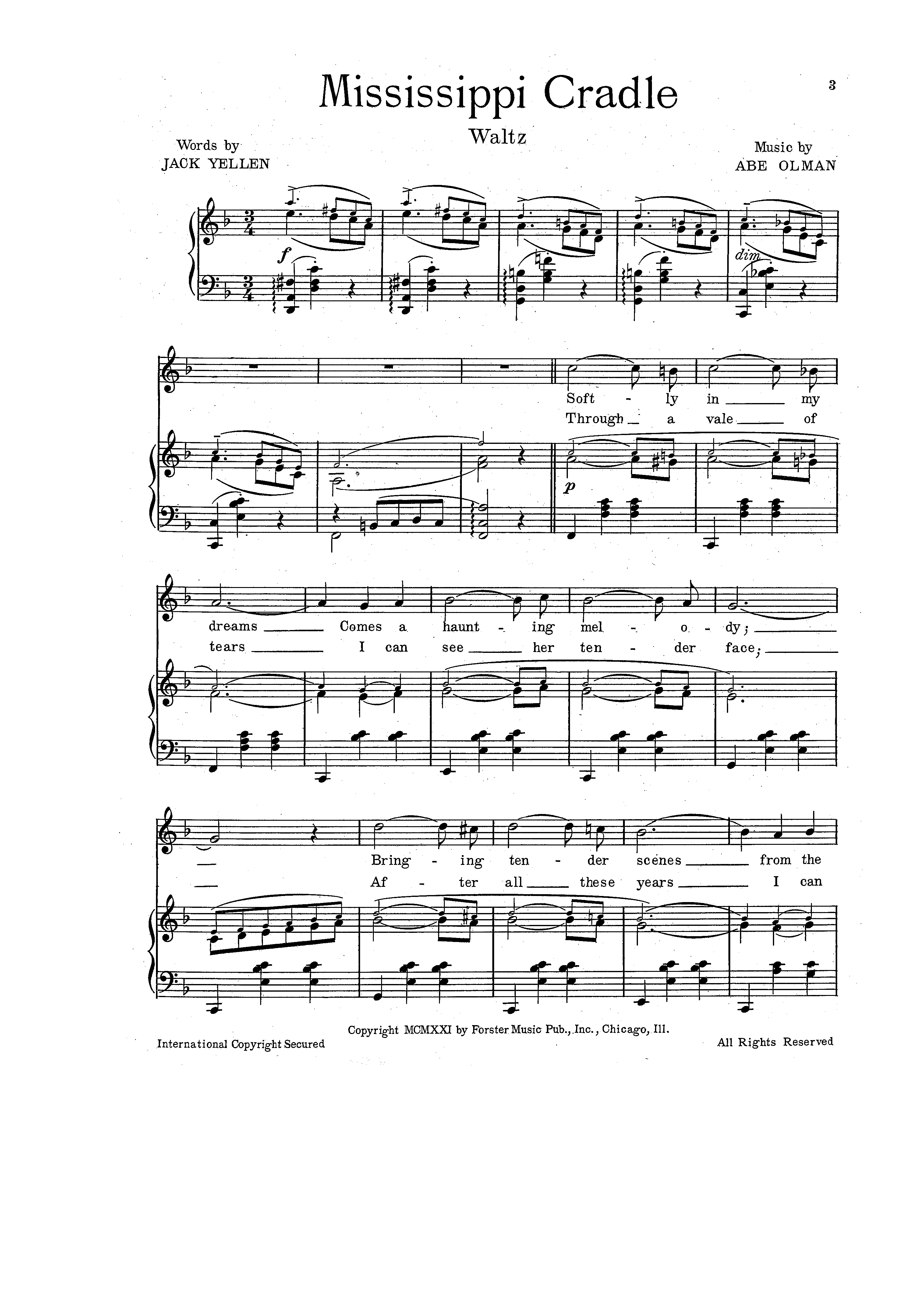 ""MISSISSIPPI CRADLE" WORDS BY JACK YELLEN*MUSIC BY ABE OLMAN" - читать интересную книгу автора