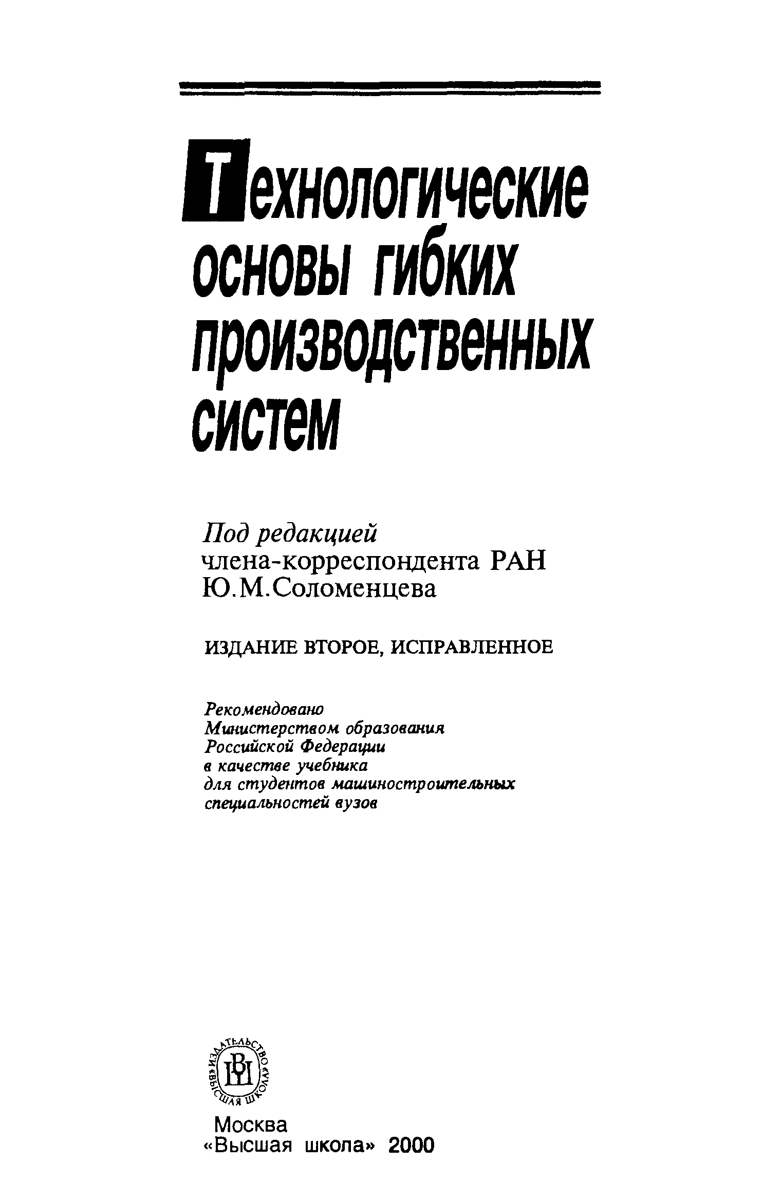 "Технологические основы гибких производственных систем" - читать интересную книгу автора (Соломенцев Ю.М. (ред.) )