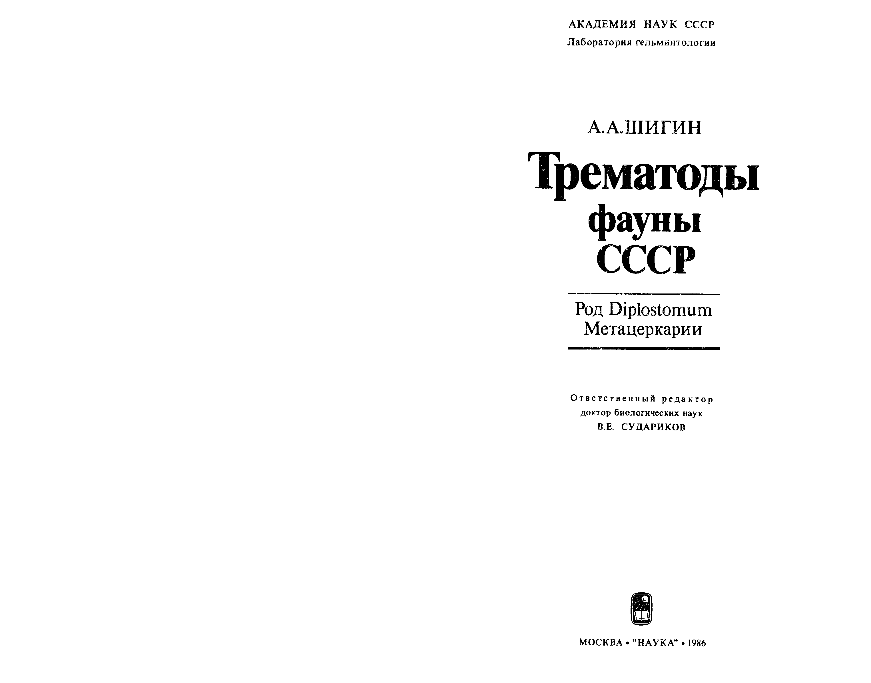 "Трематоды фауны СССР. Род Diplostomum. Метацеркарии" - читать интересную книгу автора