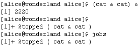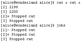 Использование символа завершения «amp;» позволяет ввести в одной строке более одной команды (и, соответственно, запустить более одного задания), связав их этим символом (Рис. 1-55). Список заданий можно получить командой «jobs».