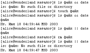 Кроме того, группировка бывает полезна, чтобы передать значение переменной сразу всем командам, или перенаправить ввод и/или вывод всех команд. Механизм управления заданиями (являющийся позднейшей добавкой к концепции открытых систем) чрезвычайно полезен при выполнении сложных работ с алфавитно-цифрового терминала. Сегодня операторы предпочитают при возможности запускать разные программы в разных окнах виртуальных терминалов в графической среде. Тем не менее, полезно хотя бы в общих чертах представлять, что это такое. Существуют также символы завершения команды «amp;amp;» и «||». Их действие связано с понятием