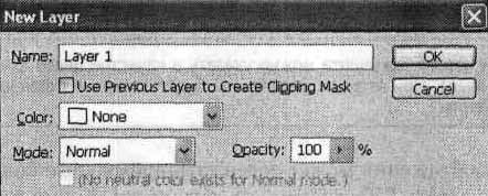 Рис. 11.3. Окно создания нового слоя В большинстве случаев для создания нового слоя достаточно просто щелкнуть на кнопке ОК. При необходимости можно задать следующие параметры слоя: • Name (Имя) —имя слоя, которое будет отображаться на панели Layers (Слои); по умолчанию слои получают имена вида Layer N (N • Use Previous Layer to Create Clipping Mask (Использовать предыдущий слой для создании обтравочной маски) — установите этот флажок, если вам необходимо, чтобы находящееся на новом слое изображение накладывалось только на слой, лежащий под ним; • Color (Цвет) — можно выбрать цвет, которым данный слой будет выделяться на панели Layers (Слои), на цвет изображения этот параметр не влияет; • Mode (Режим) —определяет режим наложения текущего слоя на слои, расположенные под ним; режимы наложения в большинстве случаев аналогичны рассмотренным в главе 8; • Opacity (Непрозрачность) — определяет непрозрачность (или прозрачность, кто как привык) слоя, задаваемую при его создании; позже можно легко изменить этот параметр. Для некоторых режимов наложения в нижней части окна создания нового слоя доступен флажок, установив который, можно указать залить слой после создания цветом, нейтральным для данного режима. Под нейтральным цветом в данном случае понимается цвет, не влияющий на изображение при наложении в выбранном режиме. Эта возможность важна при использовании некоторых фильтров, применить которые к пустому слою нельзя. Еще один способ создать новый слой — вставить с документ фрагмент изображения из буфера обмена. При этом новый слой создается автоматически, и на него помещается новый фрагмент. Созданный слой помещается на панель Layers (Слои). После этого можно изменить порядок следования слоев. Для этого перетащите слой на нужную позицию в списке при помощи мыши. Этот процесс показан на рис. 11.4.