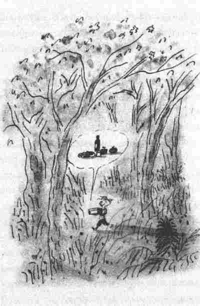 Лежа в постели, я еще долго прокручивал в голове это странное слово «клаустрофобия», повторяя его на все лады, чтобы не забыть. «Клаустрофобия… клаустрофобия… у господина Зоммера клаустрофобия… это означает, что он не может оставаться в своей комнате… а то, что он не может оставаться в своей комнате, означает, что ему всегда хочется гулять… раз у него клаустрофобия, ему всегда хочется гулять… Но если „клаустрофобия" – это то же самое, что „неохота сидеть в комнате", а „неохота сидеть в комнате" – это „охота гулять", тогда „охота гулять" и есть клаустрофобия… и тогда, значит, вместо трудного слова „клаустрофобия" можно просто сказать „охота гулять"». И тут у меня в голове все как-то завертелось, и я попытался побыстрей выбросить из головы это дурацкое новое слово и все, что было с ним связано. А вместо этого стал представлять себе, что у господина Зоммера ничего такого нет, а просто он гуляет и ходит по дорогам пешком, потому что ему нравится гулять точно так же, как мне нравилось залезать на деревья. Господин Зоммер гулял на свежем воздухе в свое удовольствие, вот и все, а путаные объяснения и латинские слова, которые взрослые выдумали за ужином, – такая же чепуха и глупость, как это дело с подвязанной ногой из сказки «Вшестером весь свет обойдем»! Но через некоторое время я вспомнил лицо господина Зоммера, увиденное из окна машины, залитое дождем лицо с полуоткрытым ртом и огромными глазами, в которых застыл ужас, и я подумал, что так не смотрят в свое удовольствие, что у человека, которому хорошо и весело, не бывает такого лица. Так выглядит человек, которому страшно или так хочется пить, под проливным дождем так хочется пить, что он мог бы выпить целое озеро. И снова в голове у меня завертелось, и я изо всех сил попытался забыть лицо господина Зоммера, но чем старательнее я пытался его забыть, тем отчетливее оно вставало пред моими глазами. Я видел каждую складку, каждую морщину, каждую жемчужину пота и дождя, едва уловимое дрожание губ, которые, казалось, что-то бормотали. И бормотание становилось все громче, все разборчивее, и я расслышал умоляющий голос господина Зоммера: «Да оставьте же вы меня наконец в покое! Оставьте, оставьте меня наконец в покое!..» И только тогда я смог оторвать от него свои мысли. Мне помог его голос. Лицо исчезло, и я тотчас заснул. Со мной в классе училась одна девочка, ее звали Каролина Кюкельманн. У нее были темные глаза, темные брови и темно-каштановые волосы с заколкой справа надо лбом. На затылке и в маленькой впадинке между мочкой уха и шеей у нее на коже рос легкий пушок, который отсвечивал на солнце и тихонько подрагивал на ветру. Когда она смеялась своим чудесным хрипловатым голосом, ее шея выпрямлялась и голова откидывалась назад, а все лицо сияло от удовольствия и глаза почти закрывались. Я мог бы не отрываясь глядеть на это лицо, я и глядел, когда только мог, на уроках и переменах. Но я делал это украдкой, чтобы никто не заметил, даже сама Каролина, потому что я был очень застенчивым. Я не был таким застенчивым в своих мечтах. В мечтах я брал ее за руку и уводил в лес, и мы вместе забирались на деревья. Сидя с ней рядом на какой-нибудь ветке, я глядел на ее совсем близкое лицо и рассказывал истории. И ей становилось смешно, она смеялась, откидывая назад голову и закрывая глаза, и разрешала тихонько подуть ей в 