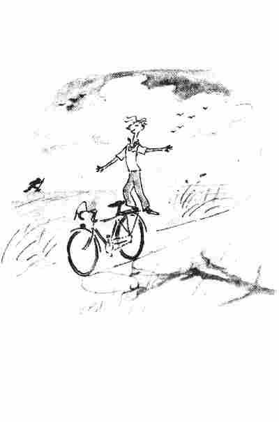 Иногда случалось, что при этом детская рука и кончики старческих пальцев на краткий миг соприкасались, и становилось очень страшно, потому что вместо ожидаемого контакта с чем-то жестким и холодным, как рыба, происходило теплое, даже горячее и притом невероятно нежное, легковесное, беглое и все-таки вызывавшее ужас касание, словно тебя задела птица, вылетевшая из чьей-то руки. Оставалось только выдавить из себя: «Большое спасибо, госпожа Функель», и можно было удирать прочь из этой комнаты, из этого мрачного дома на улицу, на свежий воздух, на солнце. Не помню, сколько мне понадобилось времени, чтобы овладеть непостижимым искусством езды на велосипеде. Помню только, что я освоил его самостоятельно, со смесью отвращения и упорного азарта, экспериментируя с маминым велосипедом на покатой дорожке в лесу, где меня никто не мог увидеть. Заросли по обеим сторонам дорожки были такими густыми и высокими, что я мог в любой момент зацепиться за кусты и остановиться, а падать было довольно мягко, в листву или на рыхлую землю. И в какой-то очередной раз после многих, многих неудачных попыток, почти ошеломляюще неожиданно, я вдруг почувствовал, что качусь. Назло всем моим теоретическим соображениям и глубокому скепсису я свободно двигался на двух колесах; поразительное чувство и гордое! На террасе нашего дома и прилегающем газоне состоялся мой испытательный заезд, награжденный аплодисментами родителей и пронзительным хохотом сестры и брата. В заключение брат преподал мне важнейшие правила уличного движения: прежде всего, правило строго держаться правой стороны, причем правая сторона определялась как та, где на руле находится ручной тормоз, и с тех пор я один-одинешенек ездил раз в неделю на урок музыки к барышне Функель, по средам, днем, с трех до четырех. Конечно, о тринадцати с половиной минутах, которые затрачивал на преодоление этой дистанции мой брат, в моем случае не могло быть и речи. Еще и сегодня я придерживаюсь этой впечатляющей дефиниции, когда в состоянии минутного замешательства забываю, где право, а где лево. Тогда я просто представляю себе велосипедный руль, мысленно нажимаю на ручной тормоз и снова отлично ориентируюсь в ситуации. На велосипед с двумя ручными тормозами или – еще хуже – с левым тормозом я не сел бы никогда в жизни. Брат был старше меня на пять лет и щеголял на велосипеде с гоночным рулем и тремя скоростями. Я же крутил педали, стоя на велосипеде моей мамы, слишком большом для меня. Даже спустив до упора седло, нельзя было одновременно и сидеть на нем, и крутить педали, можно было только или сидеть, или крутить, а этот способ передвижения был весьма неэффективным, утомительным и, как я понимал, со стороны казался чрезвычайно смешным. Я должен был стоя нажимать на педали, приводя велосипед в движение, на полном ходу плюхаться на седло, удерживаться на тряском сиденье, широко разведя или задрав вверх ноги, пока велосипед почти не остановится, а потом снова вставать на вращающиеся педали и развивать скорость. Таким толчковым способом я одолевал путь от нашего дома, вдоль берега, через Верхнее Озеро, до виллы барышни Функель всего за двадцать минут, если – вот именно, если! – по дороге не встречалось никаких препятствий. А препятствий встречалось много. Дело Б том, что хотя я мог ездить, рулить, тормозить, садиться, слезать 