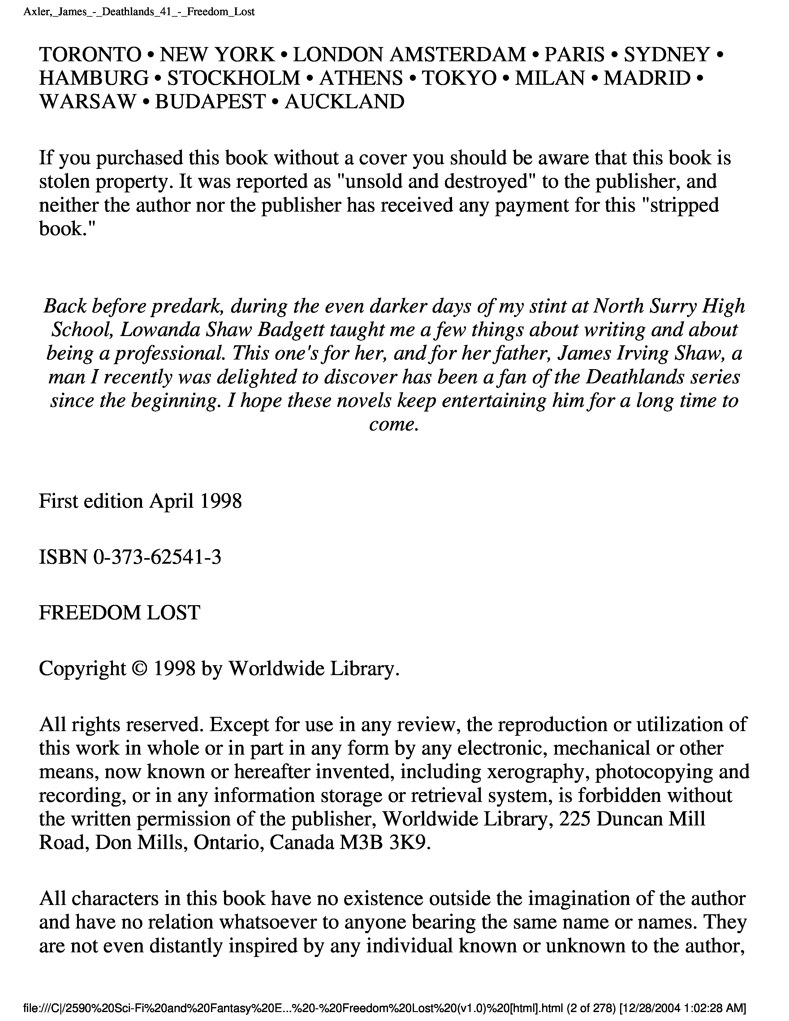 "Axler, James - Deathlands 41 - Freedom Lost" - читать интересную книгу автора