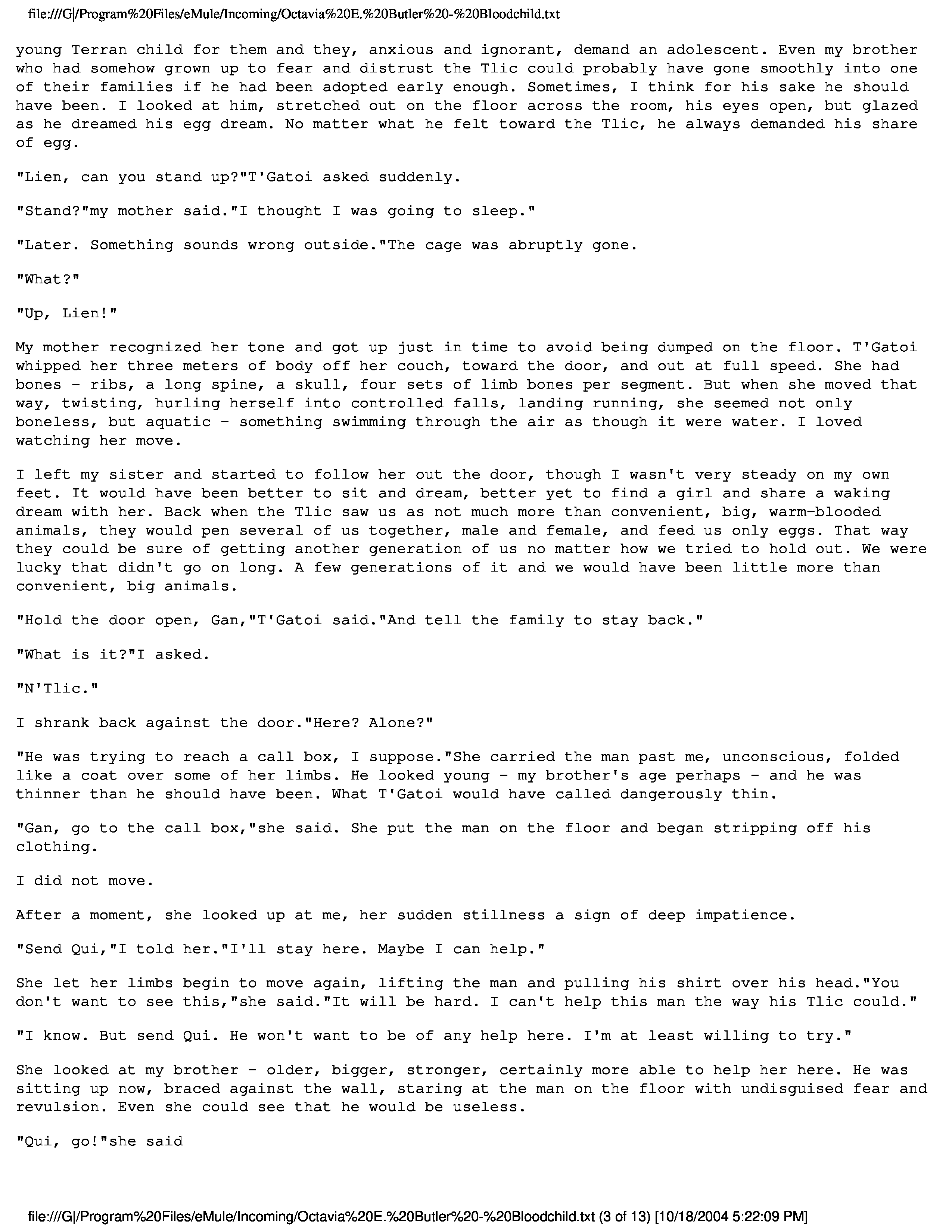 "Butler, Octavia - Bloodchild" - читать интересную книгу автора