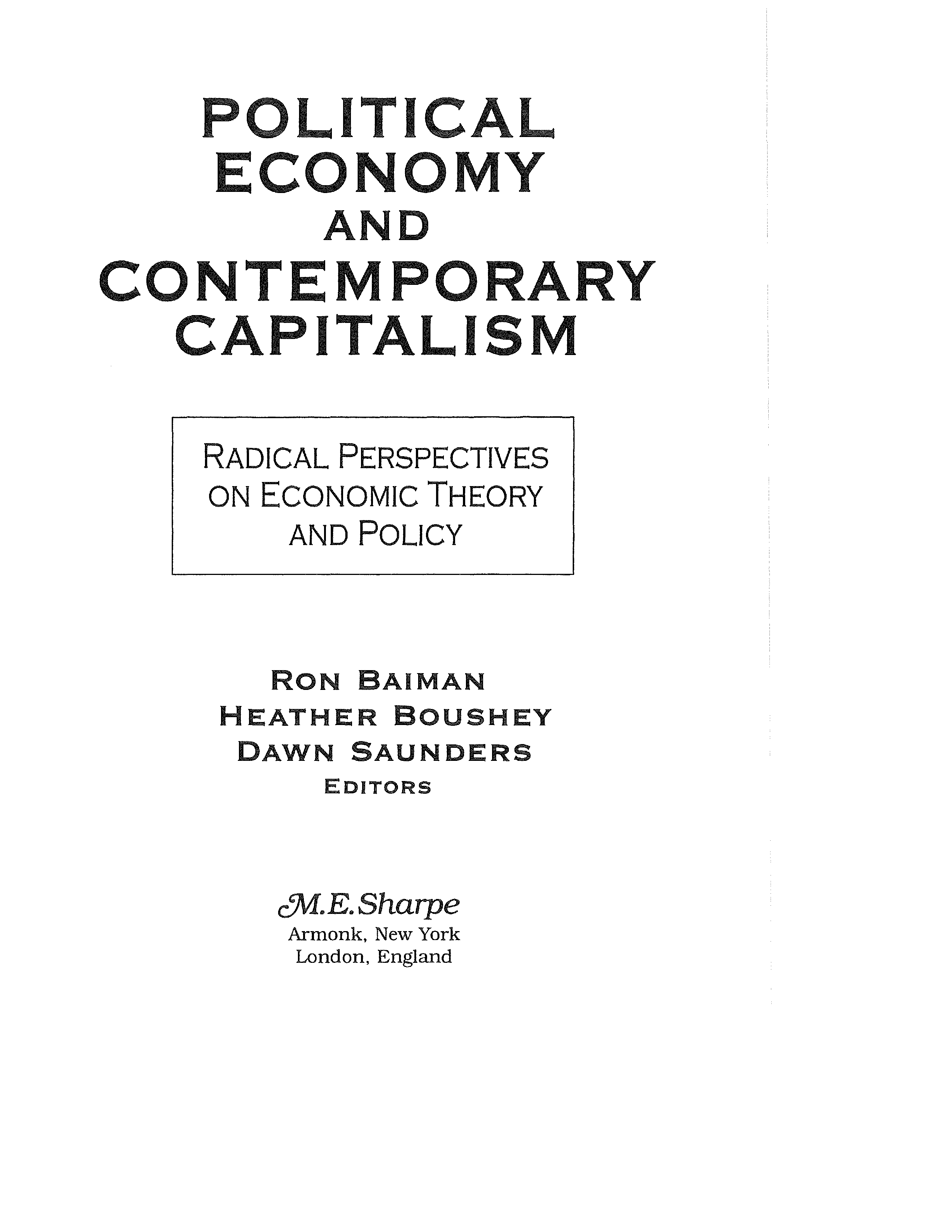 "Political Economy and Contemporary Capitalism: Radical Perspectives on Economic Theory and Policy" - читать интересную книгу автора
