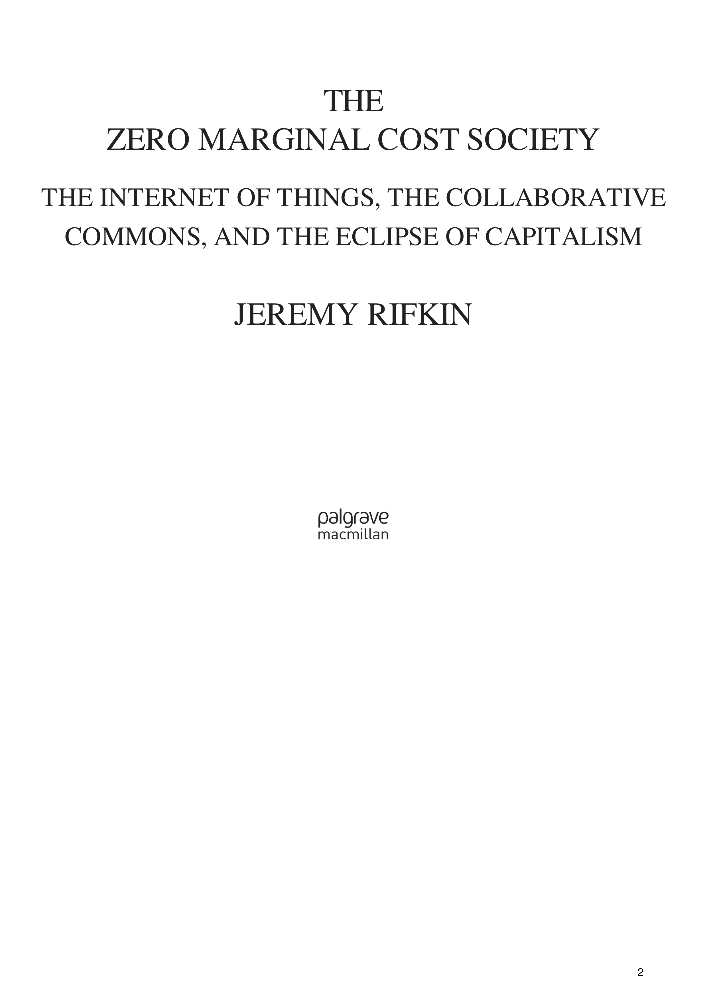 "The Zero Marginal Cost Society: The Internet of Things, the Collaborative Commons, and the Eclipse of Capitalism" - читать интересную книгу автора