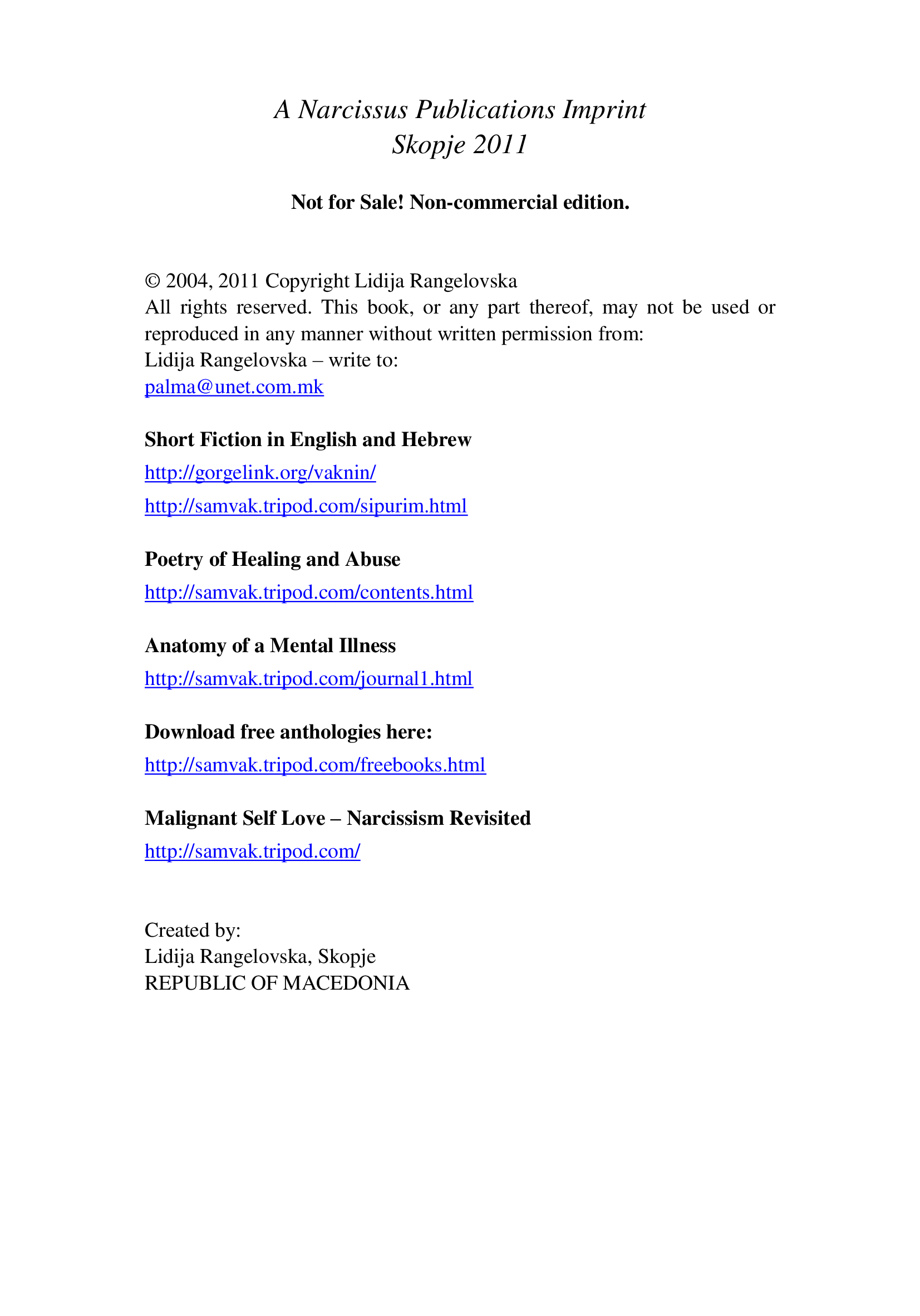 "Short Fiction about Narcissism and Mental Health" - читать интересную книгу автора