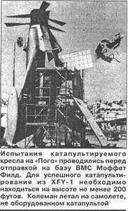 Однако реальные трудности пилотирования «Пого» были настолько велики, что казались непреодолимыми. 19 мая 1955 г. пилот-дублер Колемана Джон Небль попытался взлететь на XFY-1 без соответствующей тренировки в ангаре. Результаты были почти катастрофическими. В своих полетах, продолжавшихся до 16 июня 1955 г., Колеман также попадал в критические ситуации. С целью подготовки новых пилотов было принято решение оборудовать на базе Браун Филд стенд для тренировочных полетов на привязи. Чарльз Майерс и Джон Небль приступили к тренировкам 8 мая 1956 г., однако уже 1 августа полеты прекратились. К этому времени самолеты обычного взлета и посадки достигли скорости М=2, и «Пого» как истребитель безнадежно устарел. С другой стороны, большинство проблем, связанных с реактивными самолетами на борту авианосцев в море, также были решены. Кроме того, редуктор двигателя «погнал стружку», на ремонт требовались деньги, а новых правительственных инвестиций не ожидалось. По этим причинам проект закрыли.