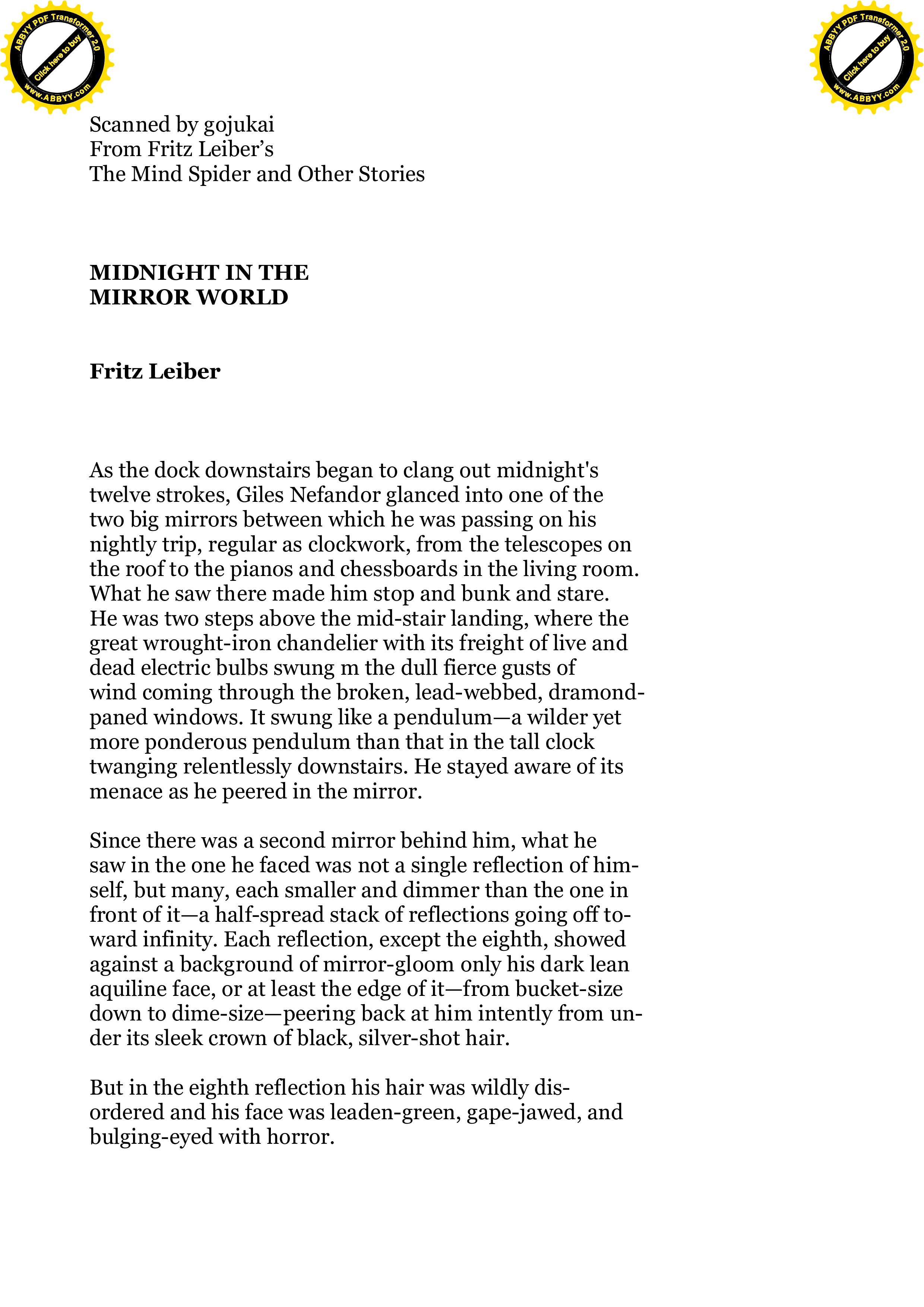 "Leiber, Fritz - Midnight in the Mirror World" - читать интересную книгу автора