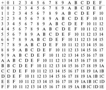 Лучше понять шестнадцатеричную систему можно, изучая ее таблицу сложения: