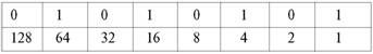 010101012 = 6410 + 1610 + 410 + 110= 8510.
