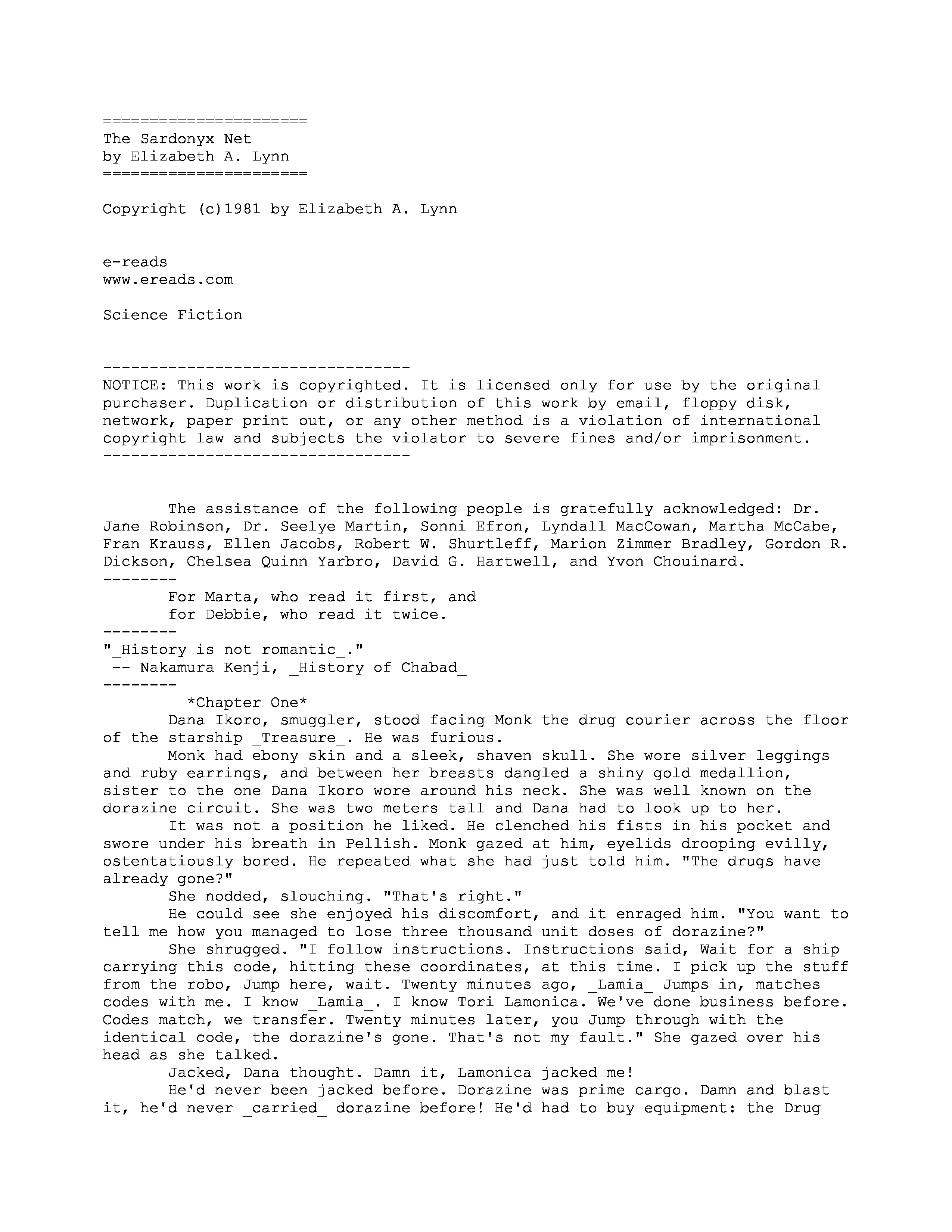 "Elizabeth Lynn - The Sardonyx Net" - читать интересную книгу автора