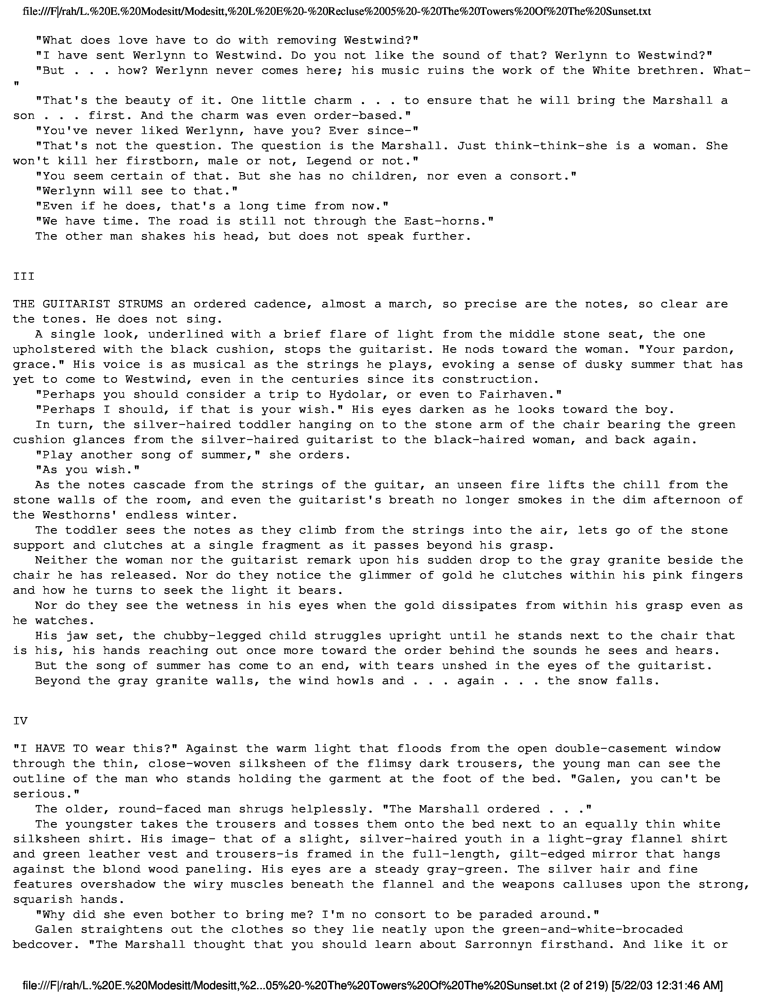 "L. E. Modesitt - Recluce 05 - The Towers of the Sunset" - читать интересную книгу автора