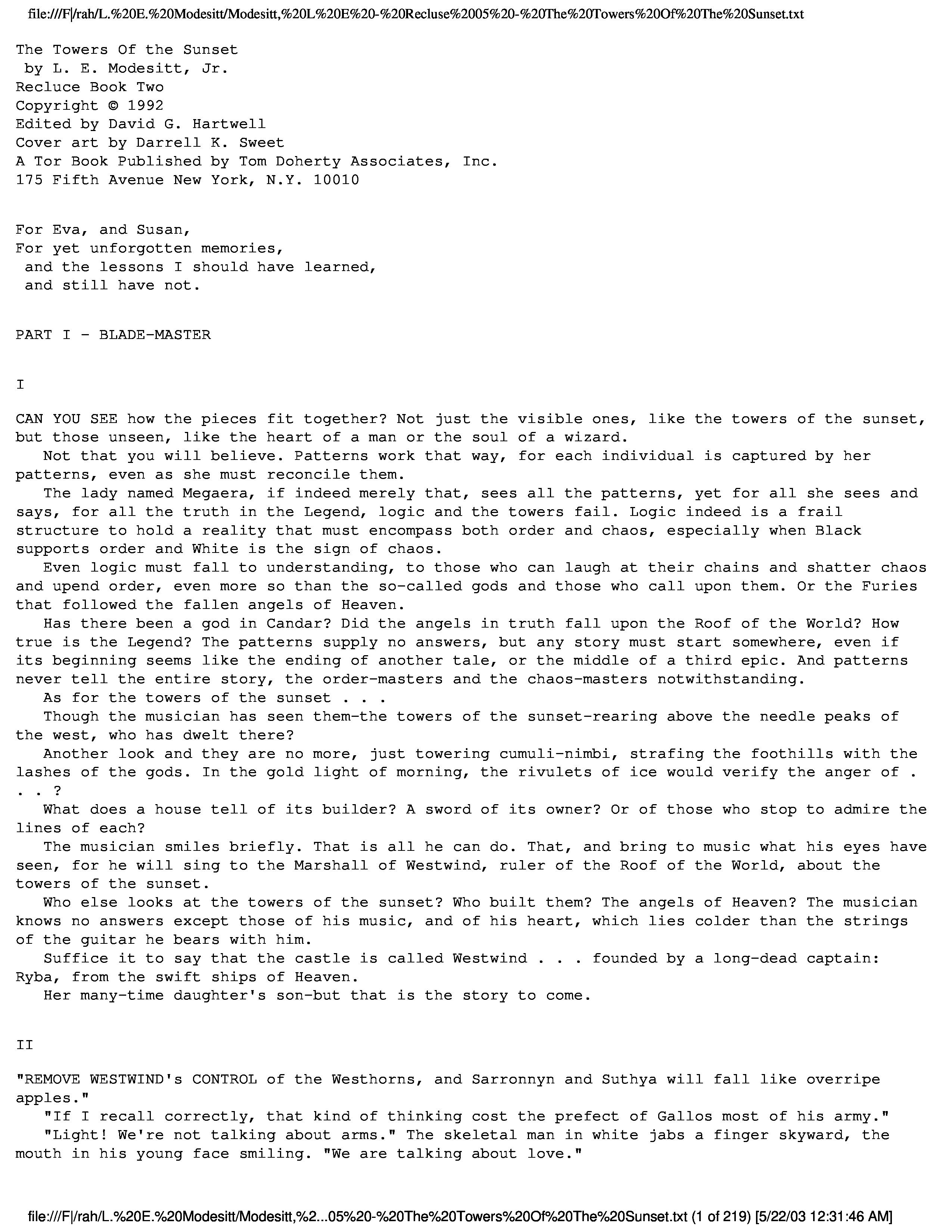 "L. E. Modesitt - Recluce 05 - The Towers of the Sunset" - читать интересную книгу автора