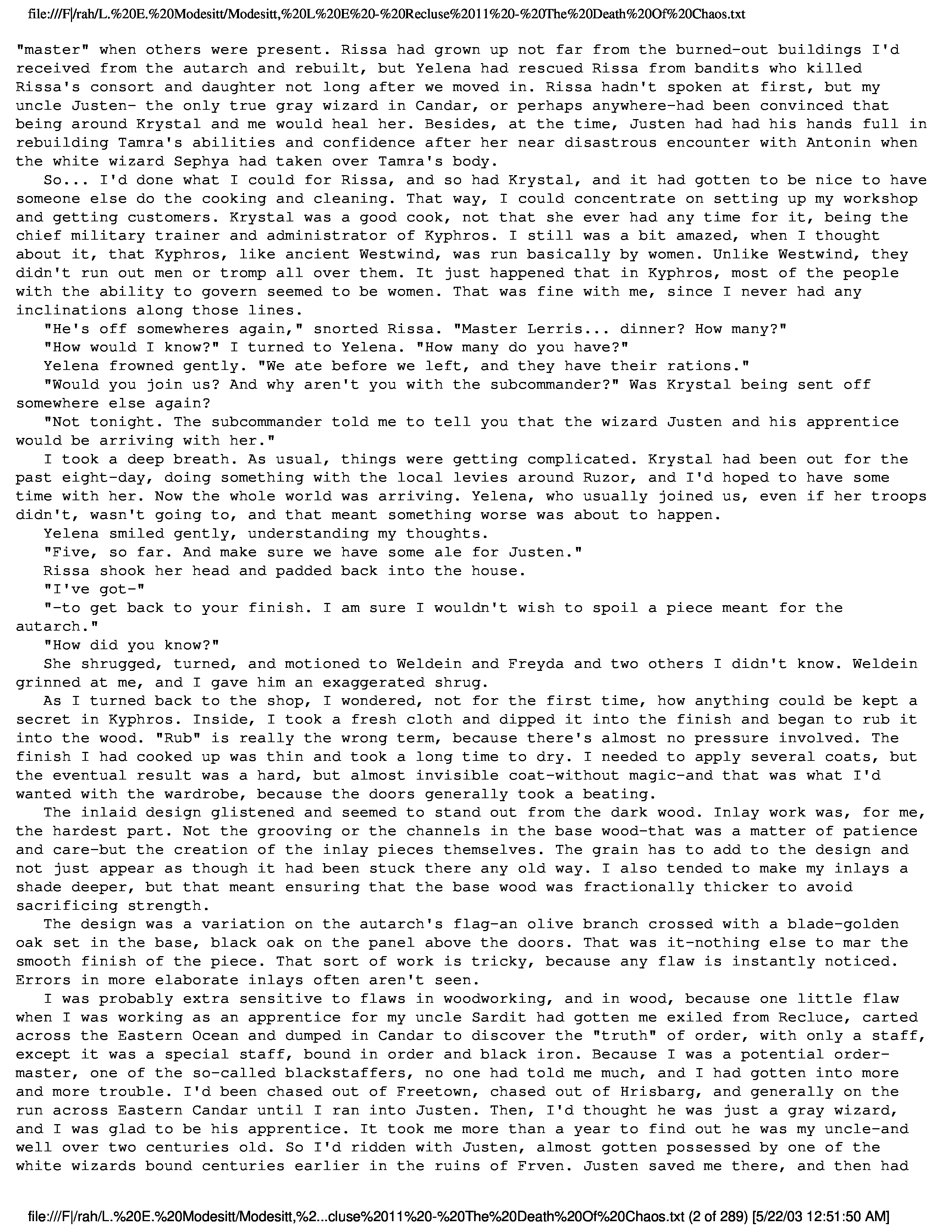 "L. E. Modesitt - Recluce 11 - The Death of Chaos" - читать интересную книгу автора (Modesitt L E)