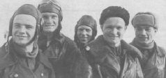 Летчики 9-го ГИАП – асы Сталинградского фронта (слева направо): И. Г. Борисов, Герой Советского Союза И. Г. Королев, А. В. Алелюхин, Герой Советского Союза Л. Л. Шестаков (командир полка), В. Д. Лавриненков. Аэродром Житкур, зима 1942 г. Pilots of the 9th ГИАП – aces of Stalingrad front (from left to right): I. G. Borisov, Hero of the Soviet Union I. G. Korolyev, A. V. Aleluhin, Hero of the Soviet Union L. L Shestakov (regiment commander), V. D. Lavrinenkov. Zhitkur airfield, winter 1942 Противнику установить личность пленного летчика не составило большого труда – в кармане его гимнастерки они нашли адресованное ст. л-ту Лавриненкову поздравление с недавним награждением четвертым орденом Красного Знамени. Оказалось, что немцам он заочно хорошо знаком, как, впрочем, и Алелюхин, Амет-хан, другие асы полка. Вопреки бытовавшему ранее мнению, отнеслись к летчику в плену неплохо, даже оставили именные часы, подарок командующего Воронежским фронтом генерала Н. Ф. Ватутина. Немцы, по мнению Владимира Дмитриевича, планировали использовать его в качестве эксперта по тактике советской истребительной авиации. Из Сталино его самолетом доставили в Днепродзержинск в лагерь для военнопленных летчиков, а через 5 дней пассажирским поездом отправили в Берлин. В одном купе два немецких офицера-охранника везли Лавриненкова и к-на Корюкина, разведчика одной из советских авиадивизий. Следующим вечером в районе Фастова, когда поезд замедлил скорость на ремонтируемом участке дороги, Лавриненкову и Корюкину удалось бежать. В немалой степени этому способствовало то, что советские офицеры «путешествовали» в вагоне еврообразца, в котором каждое купе имело выход наружу. Почти неделю пробирались они ночами и пришли в д. Кома-ровка, расположенную на юго-востоке Киевской области. Здесь местные жители помогли им связаться с партизанами, и 9 сентября Лавриненков и Корюкин стали бойцами отряда им. Чапаева. В качестве партизана Владимир участвовал лишь в одном сражении, которое отряд провел 22 сентября в районе Букринской излучины Днепра, поддерживая переправу передовых частей Воронежского фронта. За этот бой он был награжден медалью «Партизану Великой Отечественной войны». На следующий день отряд соединился с войсками фронта, и Лавриненков был отправлен за Днепр в штаб 2-й ВА. Оттуда его доставили в 8-ю воздушную армию, которая базировалась в тот момент уже в районе Мелитополя. Генерал-майор А. И. Вихорев, военком 8-й ВА, вернул ему документы и боевые награды, и после беседы с командармом Владимир убыл на хутор Чаривный – место дислокации 9-го ГИАП.
