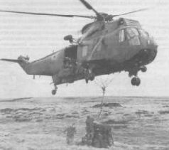 Противолодочные вертолеты «Си Кинг» применялись и для решения несвойственных им транспортных задач. На снимке: переброска артиллерийских боеприпасов на внешней подвеске Sea King antisubmarine helicopters were used in an unusual role of air transports. Seen here lifting artillery ammunition externally