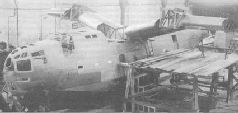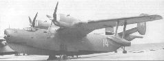 Замена двигателей на Бе-6-2-АШ-73 на гидробазе в Таганроге Бе-6-2-АШ-73 engines are being substituted at hydrobase in Taganrog Заводские испытания Бе-бМ, в который после соответствующей переделки превратился Бе-бТР, проходили с 7 января по 12 февраля 1951 г. в Поти на озере Палеостоми, на базе той же 82-й эскадрильи. Ведущим инженером остался И. Г Козельский, экипаж: ведущий летчик-испытатель М. В. Цепи-лов, летчик-испытатель Г. И. Бурьянов, бортмеханики Д. Я. Чернецкий и С. И. Кондратенко, бортрадист П. Ф. Кирьянов, стрелок-радист М. И. Супрунов. От ВМС в испытаниях принимали участие инженер-п-ки Р. М. Собченко и М. Н. Мишук. Сроки были поставлены очень жесткие, поскольку военные торопили с принятием на вооружение. Зима 1950-51 гг. на кавказском побережье выдалась по местным меркам очень суровой, и несколько раз из-за плохой погоды испытания приходилось прерывать. Когда возникла опасность не уложиться в отпущенные сроки, Собченко доложил об этом командующему авиацией ВМС генерал-полковнику Е. Н. Преображенскому. Ответ он получил весьма лаконичный: «Вам дали срок на это дело, вы его и выполняйте». Вот и летали, стараясь использовать буквально каждую погожую минуту. Однажды, сажая Бе-бМ почти в сумерки после контрольного полета на дальность, летчики угодили в самую гущу громадной стаи уток, расположившихся посередине озера. Для последних инцидент имел самые печальные последствия: на поверхности озера осталось плавать множество порубленных винтами тушек, а Бе-бМ отделался несколькими незначительными вмятинами на крыле. Несмотря на все перипетии, Бе-бМ успешно выдержал испытания – полученные ЛТХ вполне соответствовали заданным. «По своим летно-пилотажным, мореходным и эксплуатационным характеристикам, – писали в своем заключении испытатели, – Бе-бМ является наиболее современным гидросамолетом». При этом они отметили безотказную работу огневых установок на всех режимах и высотах полета. 24 марта там же, в Поти, машина была принята на Государственные контрольные испытания, которые продолжались до 19 апреля (5 апреля ее перегнали в Таганрог). Ведущим летчиком-испытателем был п-к И. М. Су-хомлин, ведущим инженером – инженер-м-р А. К. Подторжнов. Самолет вновь заслужил весьма благоприятные оценки летчиков и специалистов НИИ 15: «По технике пилотирования самолет прост… Самолет допускает взлет и посадку с боковым ветром до 12-15 м/с… Выпуск антенны радиолокационной станции ПСБН-М не оказывает заметного влияния на управление и устойчивость самолета… Гидросамолет обладает хорошими мореходными качествами и может эксплуатироваться… при ветровой волне высотой 1,5 м и ветре до 20 м/с. Гидросамолет на разбеге и пробеге после посадки опасных стремлений к продольным раскачиваниям не имеет… При нормальной посадке на второй или на два редана гидросамолет явлений барса не имеет… Авиационные моторы АШ-73 обеспечивают нормальную эксплуатацию самолета на всех режимах и высотах полета… Эксплуатация гидросамолета как на маневренной площадке, так и на плаву несложная. По своим лет-но-техническим данным и мореходным качествам гидросамолет Бе-6 значительно превосходит находящуюся на вооружении Авиации ВМС импортную лодку PBN-1 «Каталина». Высокие мореходные качества позволяют успешно использовать его на северном и тихоокеанском театрах. Летающая лодка Бе-6 крайне необходима и может быть рекомен