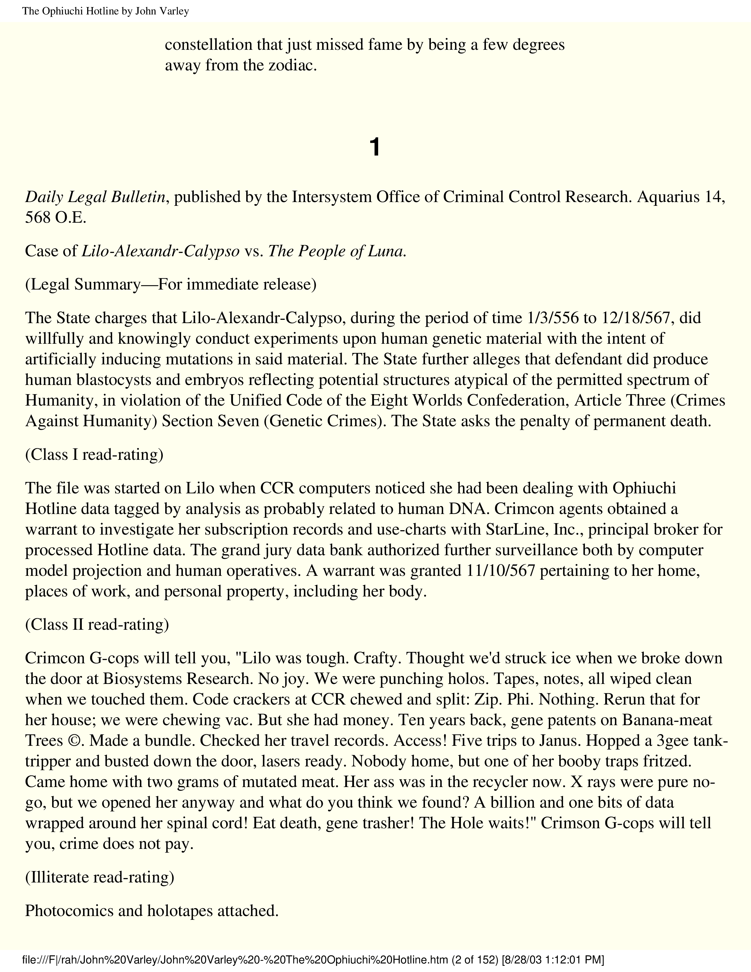 "Varley, John - The Ophiuchi Hotline" - читать интересную книгу автора