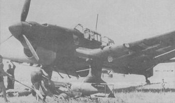 Немецкие Ju87A накануне войны Первый боевой вылет во второй мировой войне совершило 3-е звено из III/StGl на Ju-87B-1 под командованием обер-лейтенанта Б.Диллеи (позднее - кавалер рыцарского креста с дубовыми листьями). Они поднялись в воздух в 4.26 с аэродрома Эльбинг. Боевому вылету предшествовали предварительные тренировки на полигоне, так как задание было очень необычным: "штукам" предстояло не разбомбить, а сохранить для своего бронепоезда железнодорожный мост через Вислу около города Тчев в 50 км южнее Гданьска, для этого требовалось прицельно отбомбиться по бункерам караульных помещений и кабелям от электровзрывателей. По мосту проходила стратегическая железная дорога по так называемому "польскому коридору" из Берлина в Кенигсберг. Противники прекрасно понимали чрезвычайную важность этого моста и на случай нападения Германии тщательно готовились - поляки мост взорвать, немцы -сохранить. Пилоты Диллеи, Х.Шиллер и Г.Гренцель, сняв форму, предварительно несколько раз "прокатились" в Кенигсберг и обратно на поезде по мосту, проведя таким образом рекогносцировку на местности. Три самолета, несшие по одной 250-кг и по две 50-кг бомбы, сбросили их в 4.34 - на 11 минут раньше официального объявления войны. Свое задание летчики выполнили - взрывами бомб перебили провода. Однако поляки успели их восстановить и подорвали один из пролетов, поскольку немецкий бронепоезд для захвата моста и поддержки наступающих войск опоздал и остался не у дел. Следующим заданием звену Б.Диллеи стало уничтожение радиостанции в Варшаве. Утверждают 38, что вынужденная посадка командира при возвращении на базу произошла якобы из-за нехватки топлива, вероятнее, из-за боевого повреждения зенитчиками. В Польской кампании Диллеи выполнил 24 боевых вылета. По поводу первого сбитого во второй мировой войне самолета существуют две версии. По одной из них638 в 6.30 с полевого аэродрома Балице по тревоге поднялась пара истребителей PZL Р.11С из 121-й эскадрильи Ш/2 дивизиона армии "Краков", летчики капитан М.Медвецкий и подпоручик В.Гнышь. Сразу после взлета в попытке атаковать пикировщики оба оказались прямо перед Ju-87B (бортовой код -T6+GK) сержанта (по другим данным 38 - лейтенанта) Ф.Нюберта. Довернув свою "штуку", тот дал две длинных очереди по ведущему, и польский истребитель взорвался. Ведомый резким маневром влево - вверх вышел из-под атаки. Чуть позже В.Гнышь сбил два немецких Do-17Е. Согласно другой версии первым уничтоженным самолетом во второй мировой войне стал Ju-87B из I/StGl, сбитый истребителем Р.ПС около 5.30. Как бы то ни было, пикировщики в польской кампании действовали весьма успешно. Рано утром 1 сентября все польские военные аэродромы подверглись ударам немецких бомбардировщиков. Люфтваффе и качественно, и количественно значительно превосходили польскую военную авиацию, насчитывающую около 400 боевых самолетов. "Официально" война началась в 4.45, в это время "штуки" из St77 совершили первый боевой вылет, атаковав пограничные сооружения в районе г.Люблинец. Пилоты I./StG2 совершили первый боевой вылет на аэродром Кракова, но оказалось, что он пуст: противник успел рассредоточить самолеты по заранее подготовленным и хорошо замаскированным запасным аэродромам. Бомбить пришлось пустые ангары. Несмотря на упорное сопротивление поляков и ощутимые ответные удары, так 6 сентября Р.11С из истребит