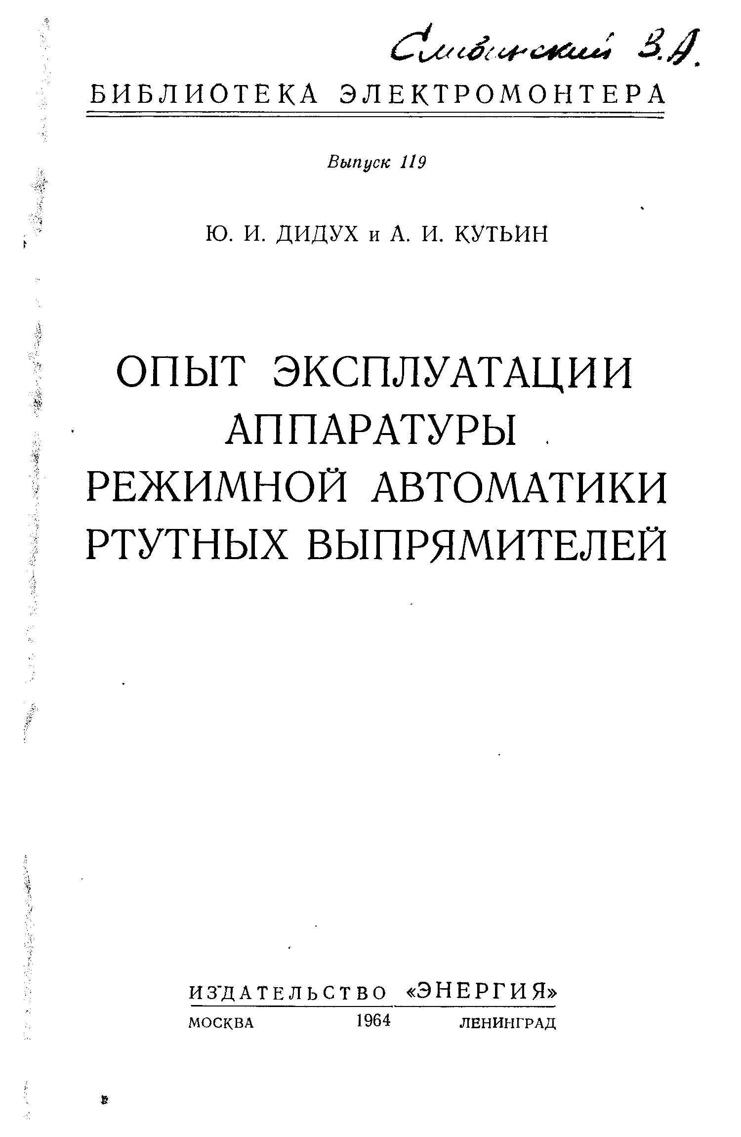 "Ю.И.Дидух, А.И.Кутьин. Опыт эксплуатации аппаратуры режимной автоматики ртутных выпрямителей ("Библиотека электромонтера" #119) " - читать интересную книгу автора