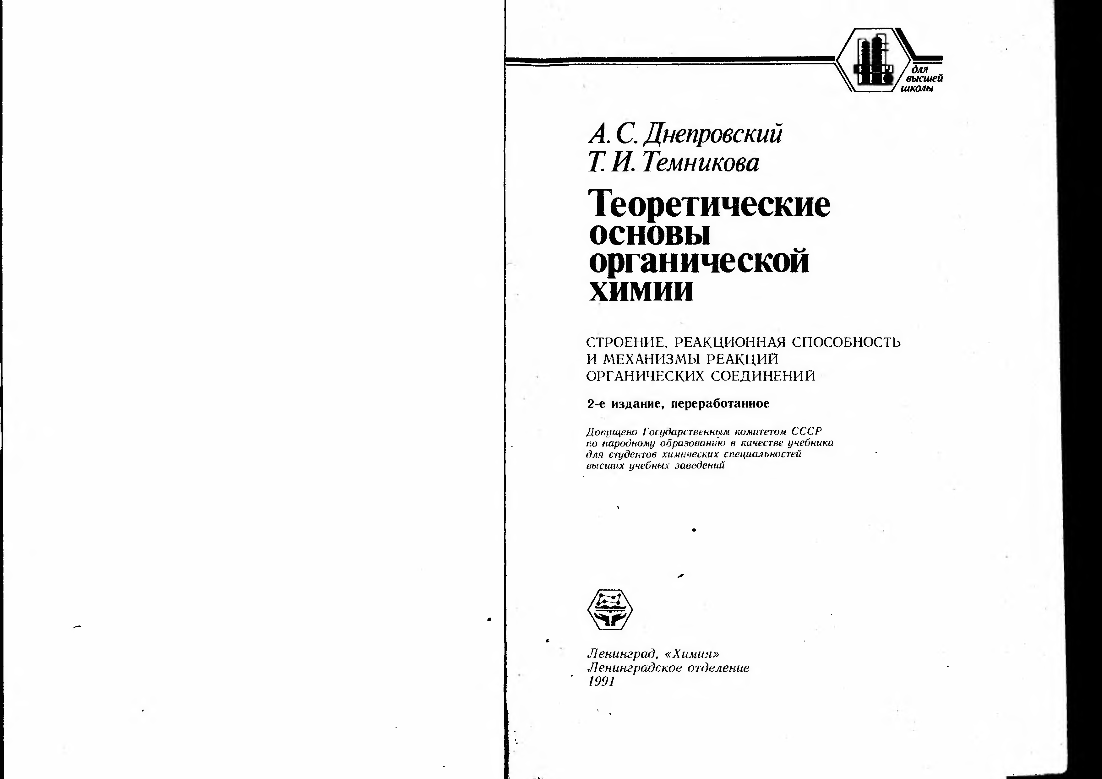 "А.С.Днепровский, Т.И.Темникова. Теоретические основы органической химии (1991, djvu) " - читать интересную книгу автора