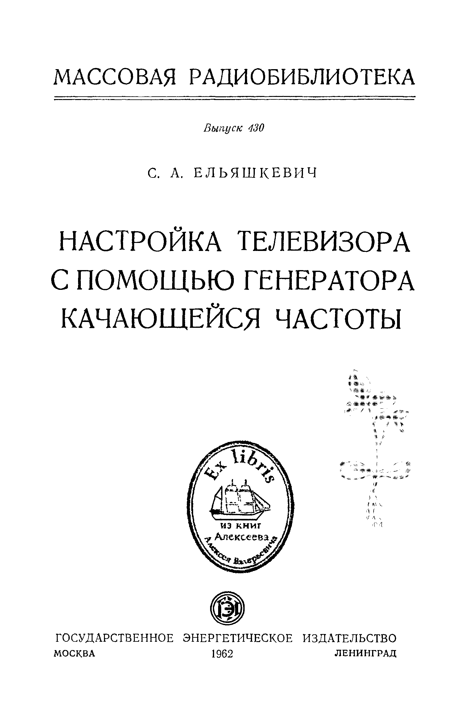 "С.А.Ельяшкевич. Настройка телевизора с помощью генератора качающейся частоты (МРБ-0430, 1962, djvu) " - читать интересную книгу автора
