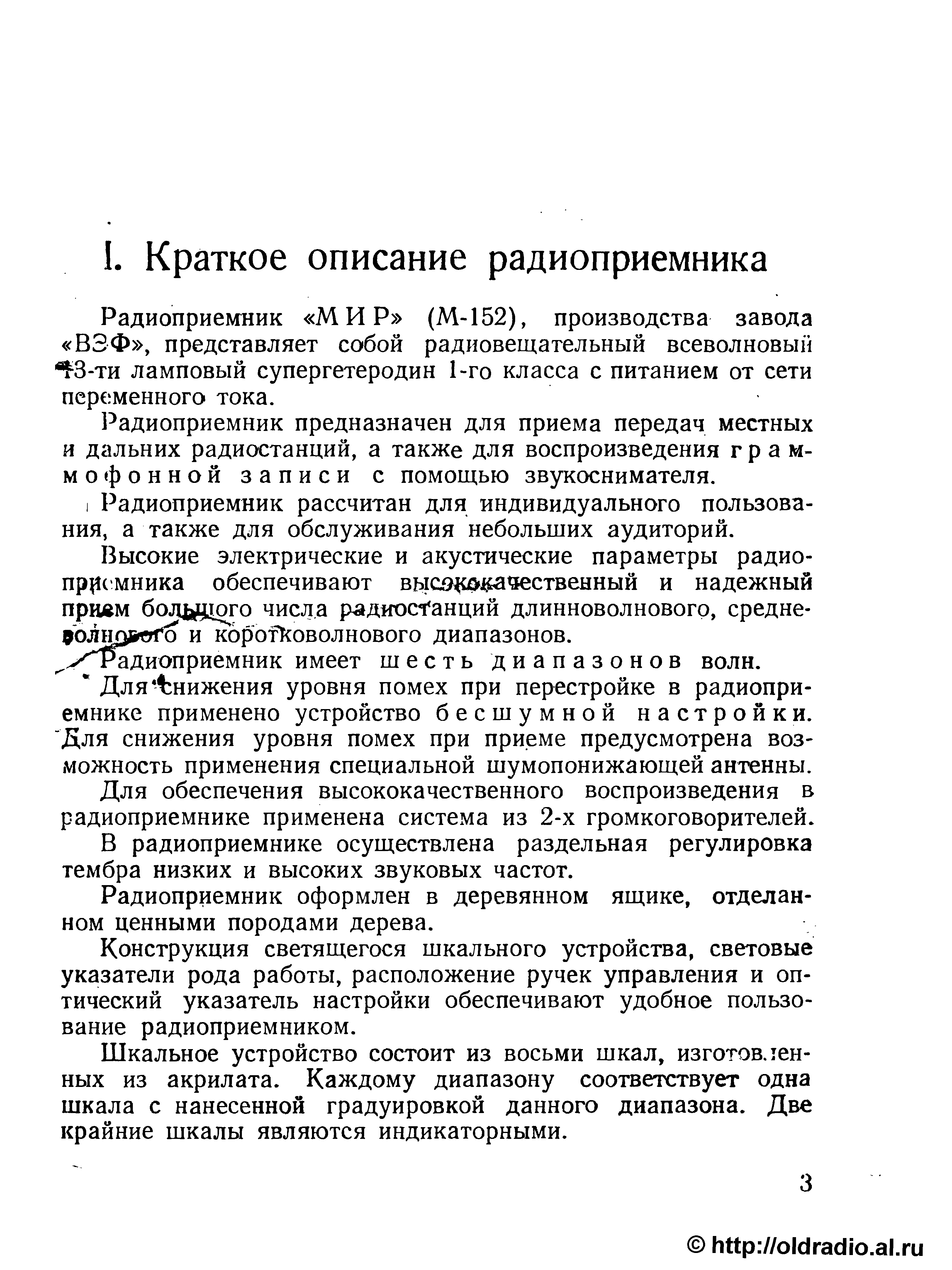 "Радиоприемник 'Мир М-152' (описание и инструкция, 195?, djvu) " - читать интересную книгу автора