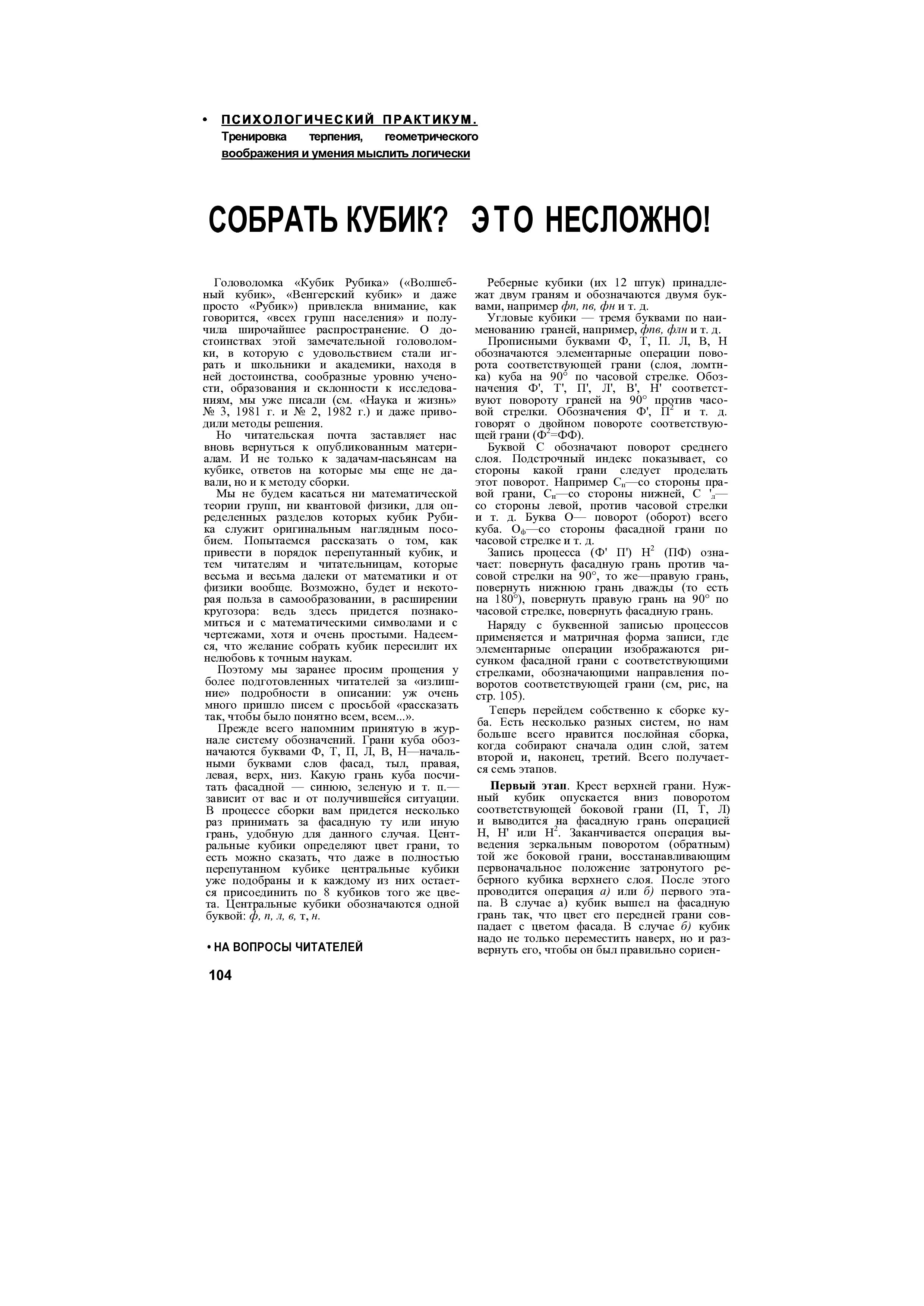 "И.Константинов. Собрать кубик? Это несложно! (pdf, Наука и жизнь 1983 05) " - читать интересную книгу автора