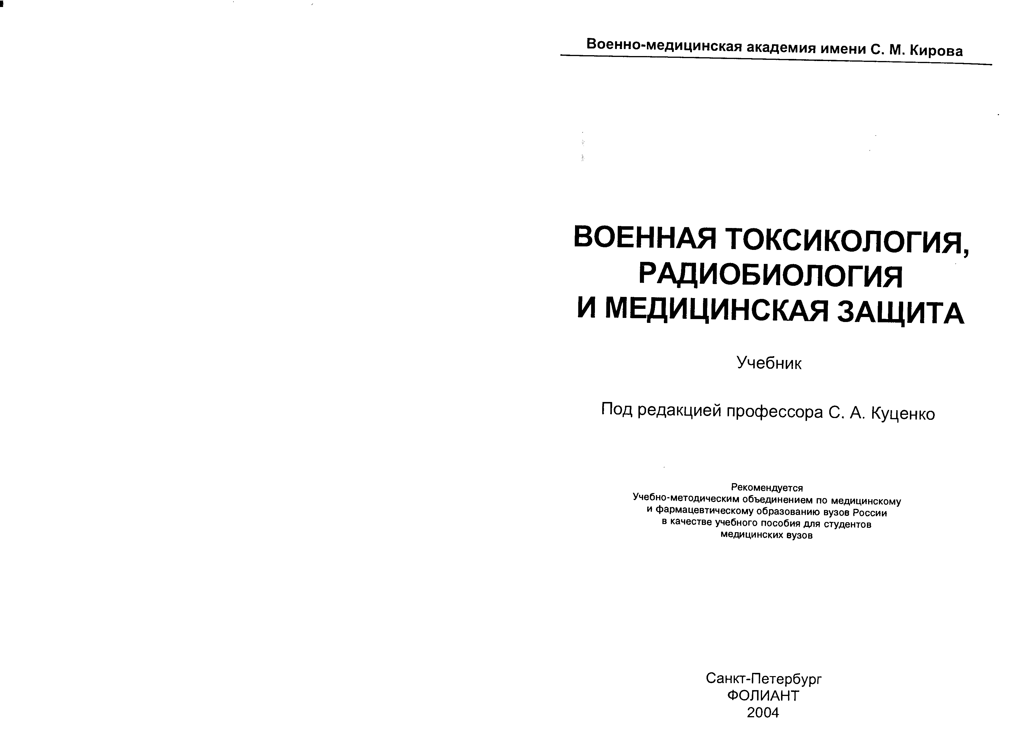 "С.А.Куценко. Военная токсикология, радиобиология и медицинская защита (2004, djvu) " - читать интересную книгу автора