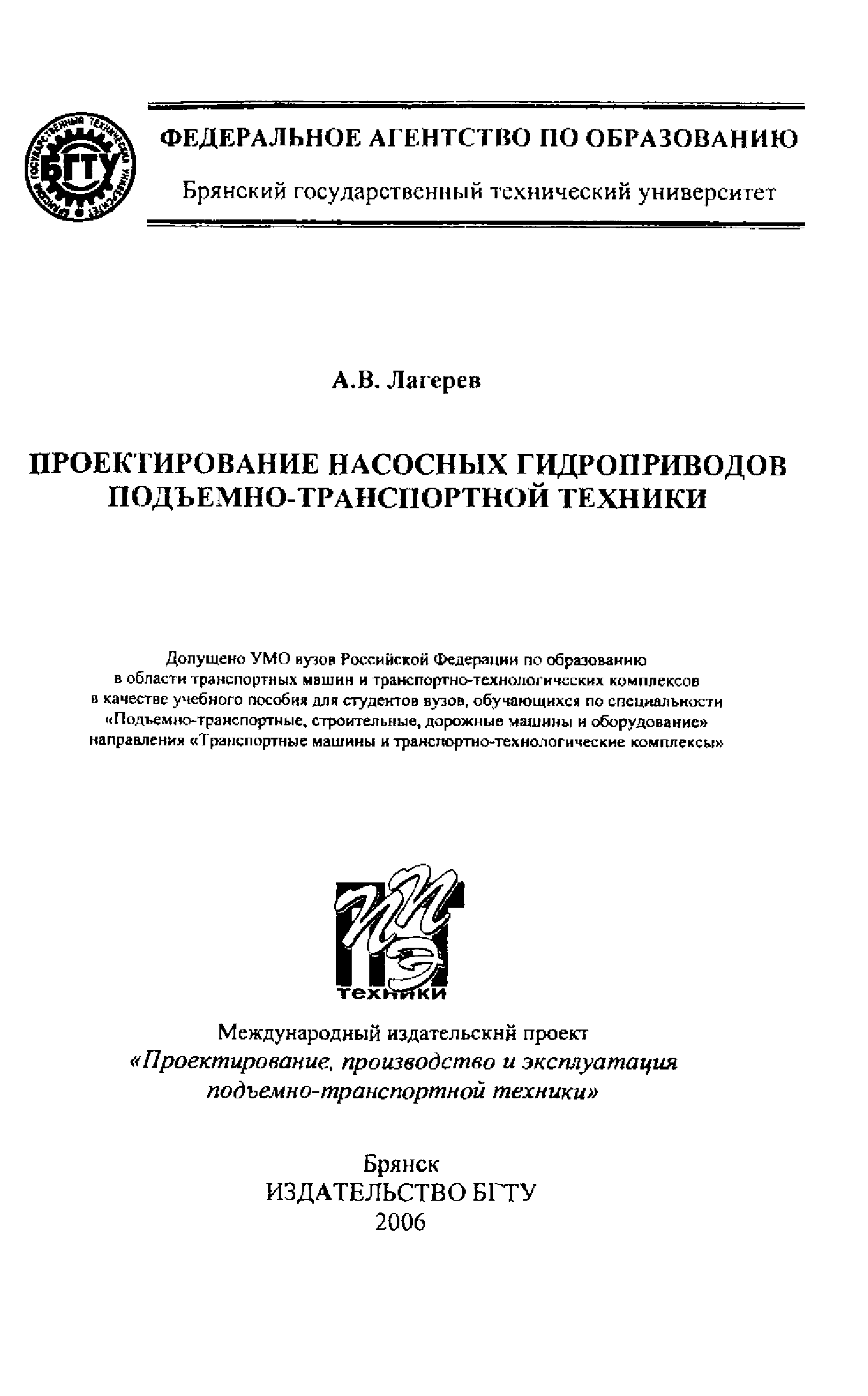 "А.В.Лагерев. Проектирование насосных гидроприводов подъемно-транспортной техники (2006, djvu) " - читать интересную книгу автора
