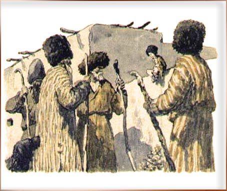 Прибежали в аул пастухи-чабаны и давай кричать: — Помогите, соседи! Повадился ходить в стадо степной волк — каждый день по барашку уносит! Мы ставили капканы, но он не пошёл в капкан, потому что хитёр. Мы рыли ямы, но в яму он не попал, потому что умён. Мы все вместе ходили в засаду, но не убили волка, потому что он очень силён и ловок, а такого большого мы никогда не видали. Пойдёмте убьём его! Покачали головами дехкане: — Нам ли идти на волка, если чабаны и те не могут с ним справиться? Развели руками и разошлись. А Ярты-гулок всё слыхал. Как раз в это время он сидел на стене-дувале и заплетал свои тугие косички. — Эй, чабаны! — звонко крикнул Ярты пастухам. — Возьмите меня охранять стадо. Я волка не испугаюсь. Чабаны глянули на Ярты-гулока и принялись хохотать: — С мухой тебе сражаться, а не со страшным зверем! Но мальчик не унимался: — Конь виден на скачках, а джигит-молодец в бою. Испытайте меня на деле! Тогда старый пастух сказал: — От пробы вино не киснет. Если ты избавишь нас от волка, мы скажем тебе спасибо. Не избавишь — сам на себя пеняй, а мы в обиде не будем. Скажи только, в чём нужна тебе наша помощь. — Помощь друга — опора в беде, — поклонился чабанам Ярты-гулок, — если будет нужно, я вас позову, а пока ступайте к своему стаду. Вы увидите, что я сдержу своё слово и не дам в обиду ваших барашков. Чабаны ушли к своему стаду, а Ярты стал собираться в дорогу. Он согнул себе лук из тонкой куриной кости, сделал стрелы из острых колючек тёрна, а вместо копья взял старое шило. Потом он стал просить старуху: — Испеки мне, мать, чурек на дорогу. Я иду сражаться со страшным волком. Мать не хотела отпускать сына в такую опасную дорогу, но Ярты-гулок так её просил, так приставал, что она уступила. Она испекла сыну не простой хлеб-чурек, а сдобную слоёную лепёшку и помазала её сверху каймаком-сметаной. — Будь, сынок, осторожен и помни, что ты у нас один, как сердце в груди. Без тебя мы умрём от горя. Так сказала старуха сыну на прощание. Ярты-гулок завернул лепёшку в лист винограда, поклонился матери и зашагал по дороге, напевая весёлую песню: Он очень долго бродил по пескам, разыскивая следы волка, и, наконец, увидел его в зарослях саксаула. Волк спал и храпел так громко, что листья на деревьях дрожали. Но мальчик не испугался. Он подкрался к волку, натянул свой лук и одну за другой спустил в зверя все свои стрелы.