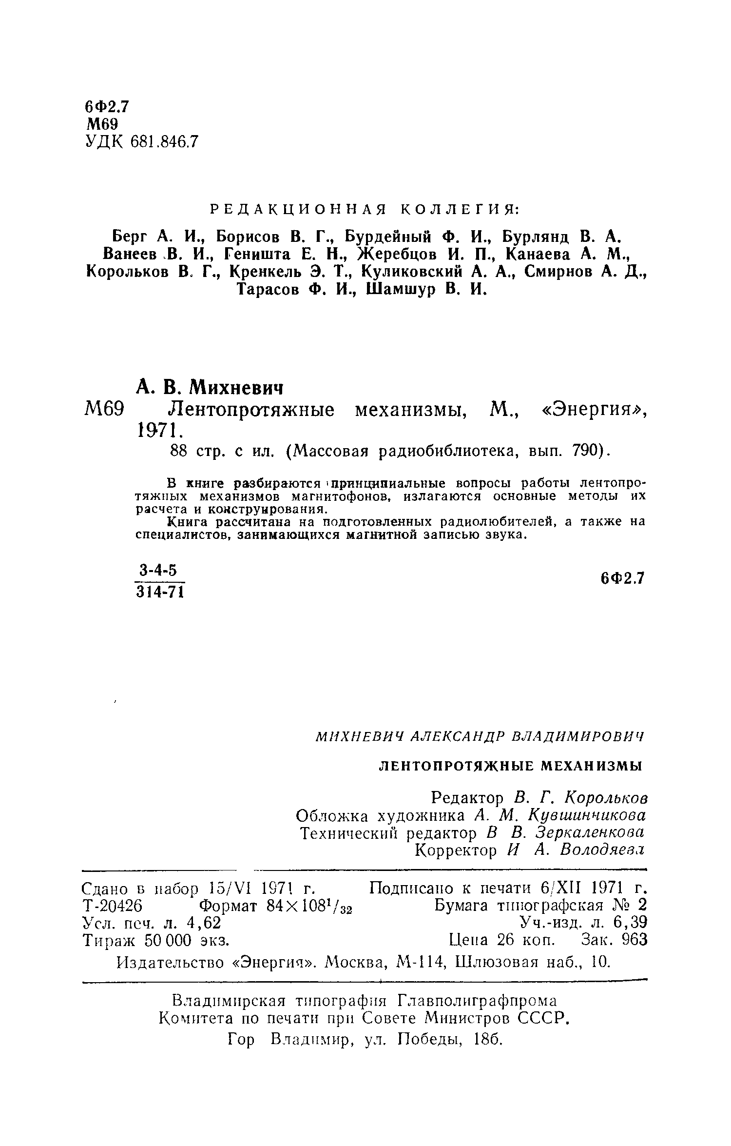 "А.В.Михневич. Лентопротяжные механизмы (МРБ-0790, 1971 djvu) " - читать интересную книгу автора