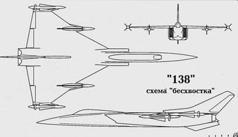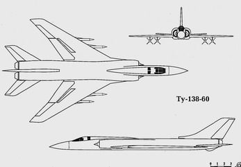 Помимо нескольких проектов самолета "138", выполненных по схемам, в основном повторявшим исходный Ту-128, в ОКБ прорабатывалось в 1963 году несколько вариантов схем для самолета "138", базировавшихся на нетрадиционных компоновочных схемах, в частности, предлагались схемы бесхвостки с дельта-крылом и схема "утка". Помимо двигателей типа ВД-19, для самолета "138" рассматривалась возможность использования РД-36-41, которые являлись дальнейшим развитием ВД-19. Самолет "138" и комплексы на его базе имели следующие проектные данные: Ту-138-60 Ту-138-100 Длина самолета, м 31,73 Размах крыла, м 17,53 Высота самолета, м 7,78 Взлетная масса, кг 45000-47000 Максимальная скорость полета с ракетами, км/ ч 2100-2400 Рубежи перехвата, км на сверхзвуке 1000 на смешанном режиме 1600-1800 на дозвуке 2000-2100 Время барражирования, ч 4,0-4,5 Дальность обнаружения целиРЛС.км 90-100 130-200 Опыт эксплуатации комплекса Ту-128С-4, проектные наработки по проектам "128" и "138", а также новые более жесткие требования к перспективным авиационным комплексам перехвата со стороны заказчика позволили ко второй половине 60-х годов сформировать программу модернизации и развития подобных систем. Было решено вести работы в три этапа. На первом этапе решено было провести работы по уменьшению высоты боевого применения комплекса с 8000-10000 м до 500-1500 м, с повышением помехоустойчивости элементов комплекса. Реализацией первого этапа модернизации стали работы по комплексу Ту-128С-4М. На втором этапе планировалось увеличение с 21000 м до 23000-25000 м высот и скоростей с 2000 км/ч до 3000 км/ч перехватываемых целей, на встречно-пересекающихся курсах. Уменьшение минимальной высоты боевого применения до 50-1000 м, при расширении зон возможных пусков ракет до 60 град., дальнейшего повышения помехоустойчивости элементов комплекса. На этом этапе должны были быть расширены возможности комплекса по проведению автономных и полуавтономных боевых действий. Увеличивалась с 50 км до 90-100 км дальность обнаружения целей, с 35-40 км до 65-70 км дальность пуска ракет и с 7-8 км до 9-10 км превышение поражаемых целей. Предложения по этому этапу базировались на наработках по проектам "128А" и "138". На третьем этапе планировалось значительное улучшение летных характеристик самолета-носителя за счет применения новых двигателей и новых конструктивных и компоновочных решений. Третий этап базировался частично на работах по проектам "128А" и "138" и предполагал дальнейшие работы над перспективными комплексами и их самолетами-носителями. По третьему этапу в ОКБ во второй половине 60-х годов велись работы по проекту, получившему обозначение "148" (Ту-148).