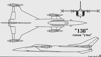 В ходе проектирования самолета "138" на моделях были проведены аэродинамические исследования, которые показали, что получить необходимое аэродинамическое качество на крейсерском дозвуковом режиме полета получить не удается из-за значительного увеличения миделя фюзеляжа (ВД-19 и новые РЛС имели больший диаметр), а следовательно под вопрос ставилось достижение необходимой дальности и продолжительности полета, что являлось одним из важнейших требований к перехватчику. Неблестящими с новым тонким крылом получались и взлетно-посадочные характеристики. Для решения возникших проблем были предложены различные пути доработки проекта. Хотели ввести систему дозаправки топливом в полете "Конус", систему сдува пограничного слоя с закрылков и носков крыла или добиться повышения аэродинамического качества крыла за счет отсоса пограничного слоя. Однако все эти мероприятия или утяжеляли конструкцию, или значительно снижали экономичность силовой установки за счет отбора воздуха на систему сдува. К середине 60-х годов в ОКБ решено было вести дальнейшие работы на пути модернизации дальних комплексов перехвата на базе самолетов с изменяемой стреловидностью крыла, что и было осуществлено в проекте "148". С началом работ по этому комплексу все работы по проекту "138" были прекращены.