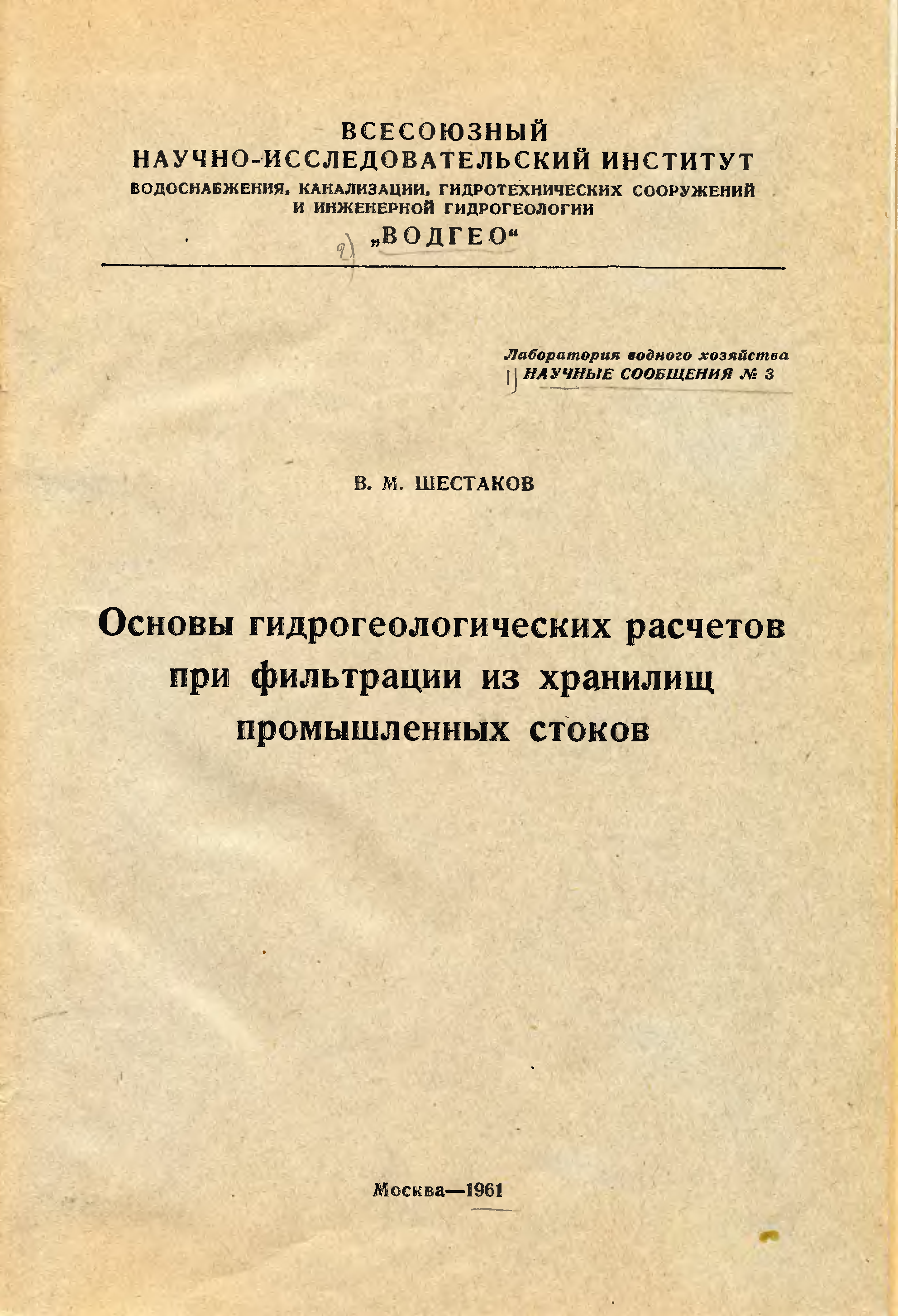 "В.М.Шестаков. Основы гидрогеологических расчетов при фильтрации из хранилищ промышленных стоков (1961, djvu) " - читать интересную книгу автора